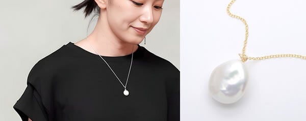マンテル ネックレス 大粒 淡水バロックパール 個性派 ふたつとないフォルム サージカルステンレス製 レディース / pe-063