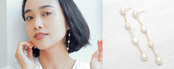 繊細なパールライン チェーンピアス 淡水パール バロック / アレルギー対応 ps-137