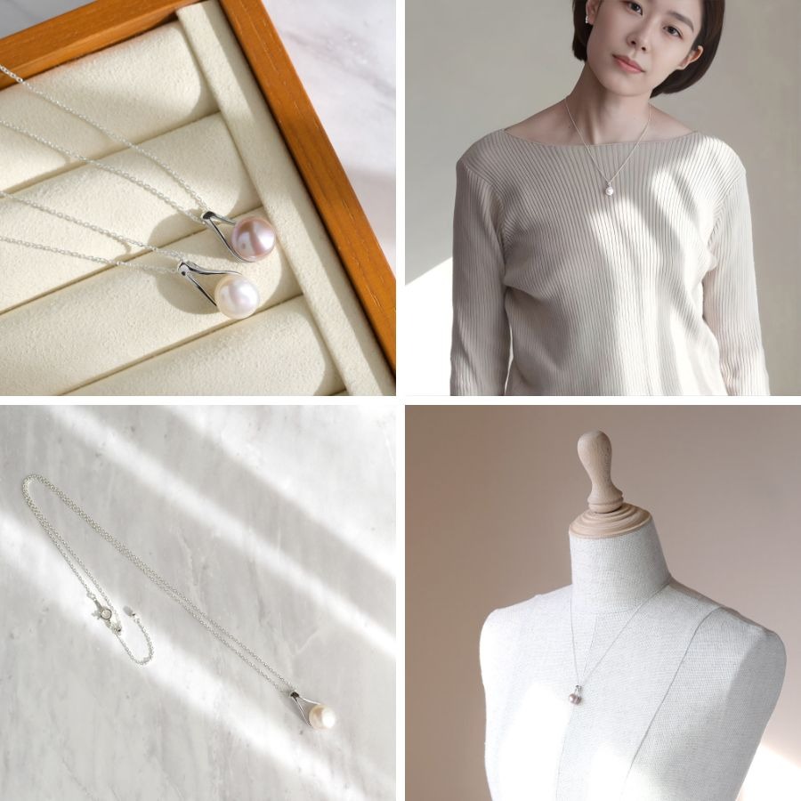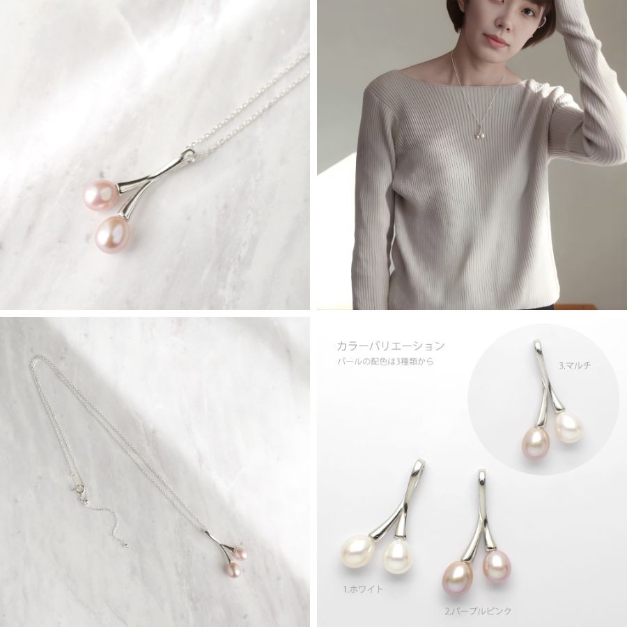 したたる果実の艶を纏う 淡水パールシルバー製 ペンダント / pe-194