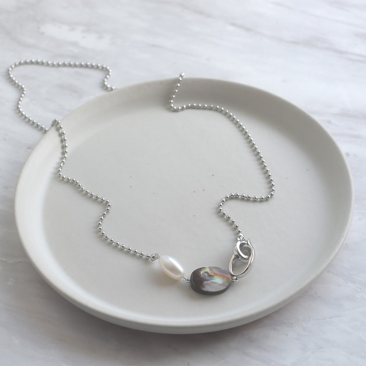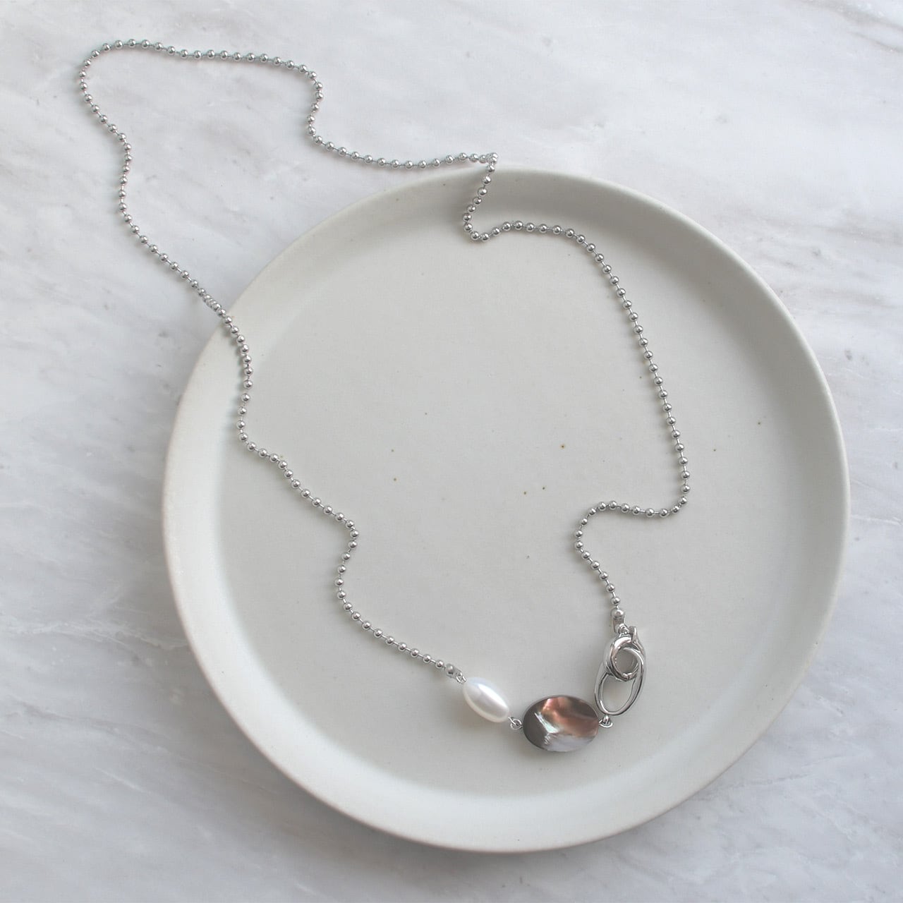 2WAY パール シェル 真鍮 デザイン ネックレス 淡水パール / サージカルステンレス ボールチェーン レディース フォーマル 入学式 卒業式 ギフト / pe-151