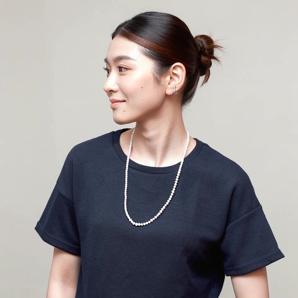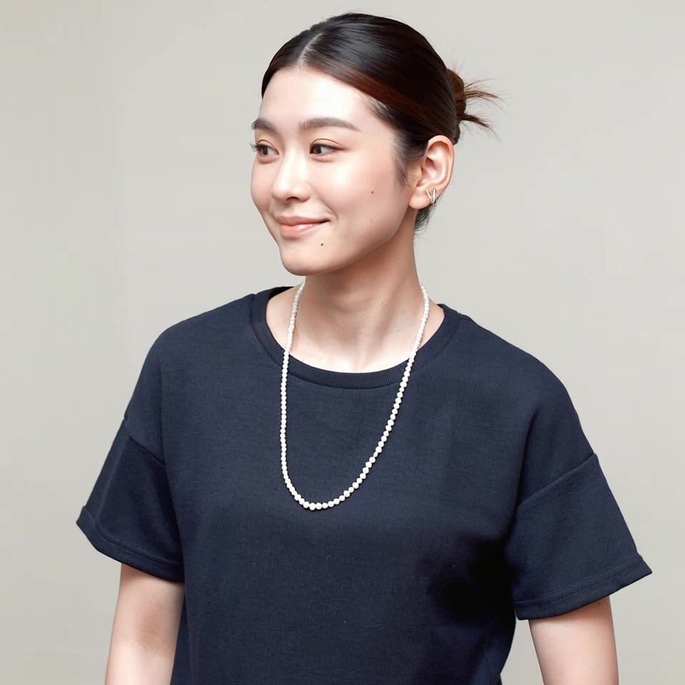 60cm 淡水パール × マザーオブパール アシンメトリー ネックレス 小粒バロック / セミロング フォーマル 普段使い ギフト / pe-152