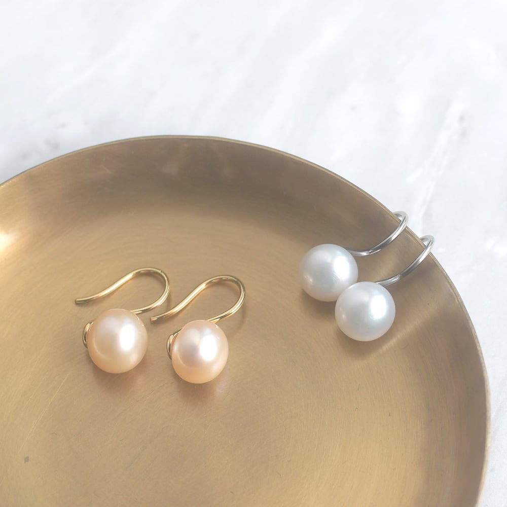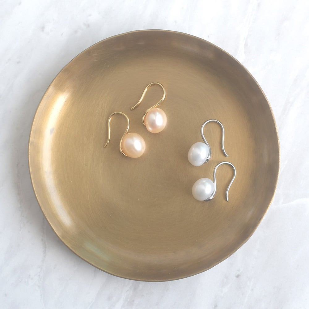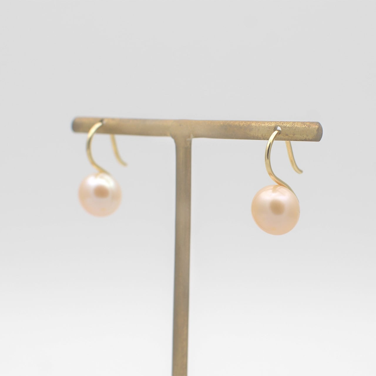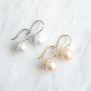 約9.0mm ゆるやかで上品な 天然パール フックピアス / 淡水パール ホワイト オレンジ ps-143