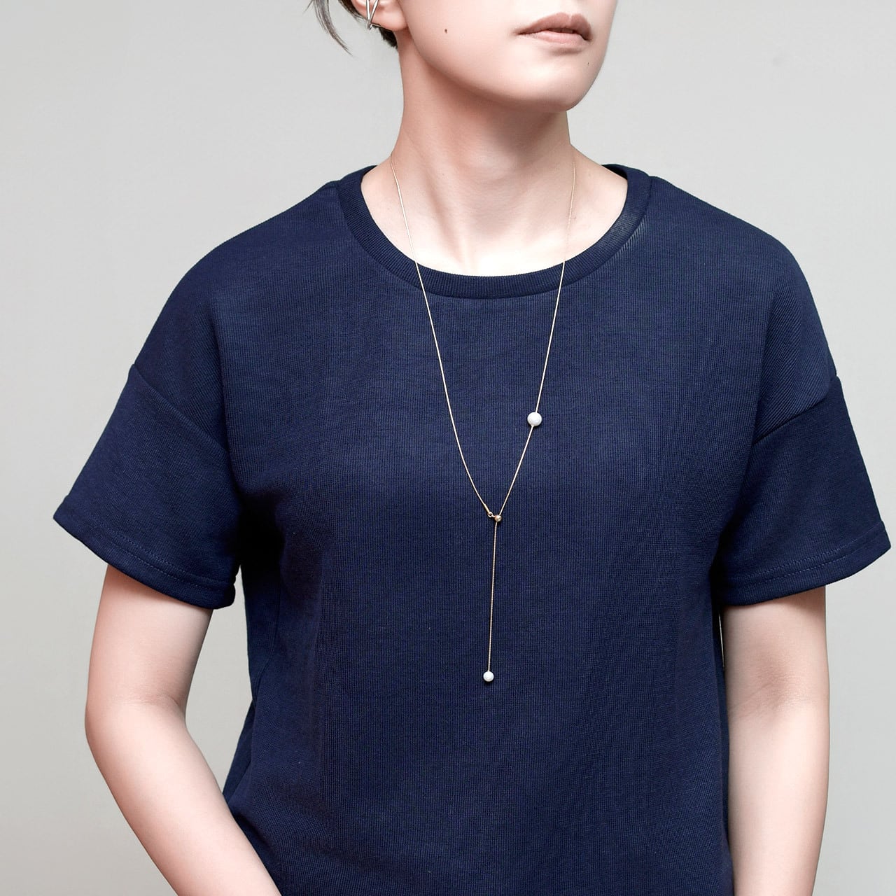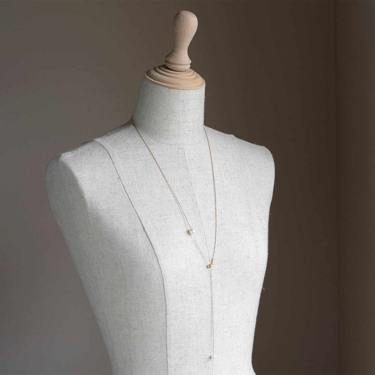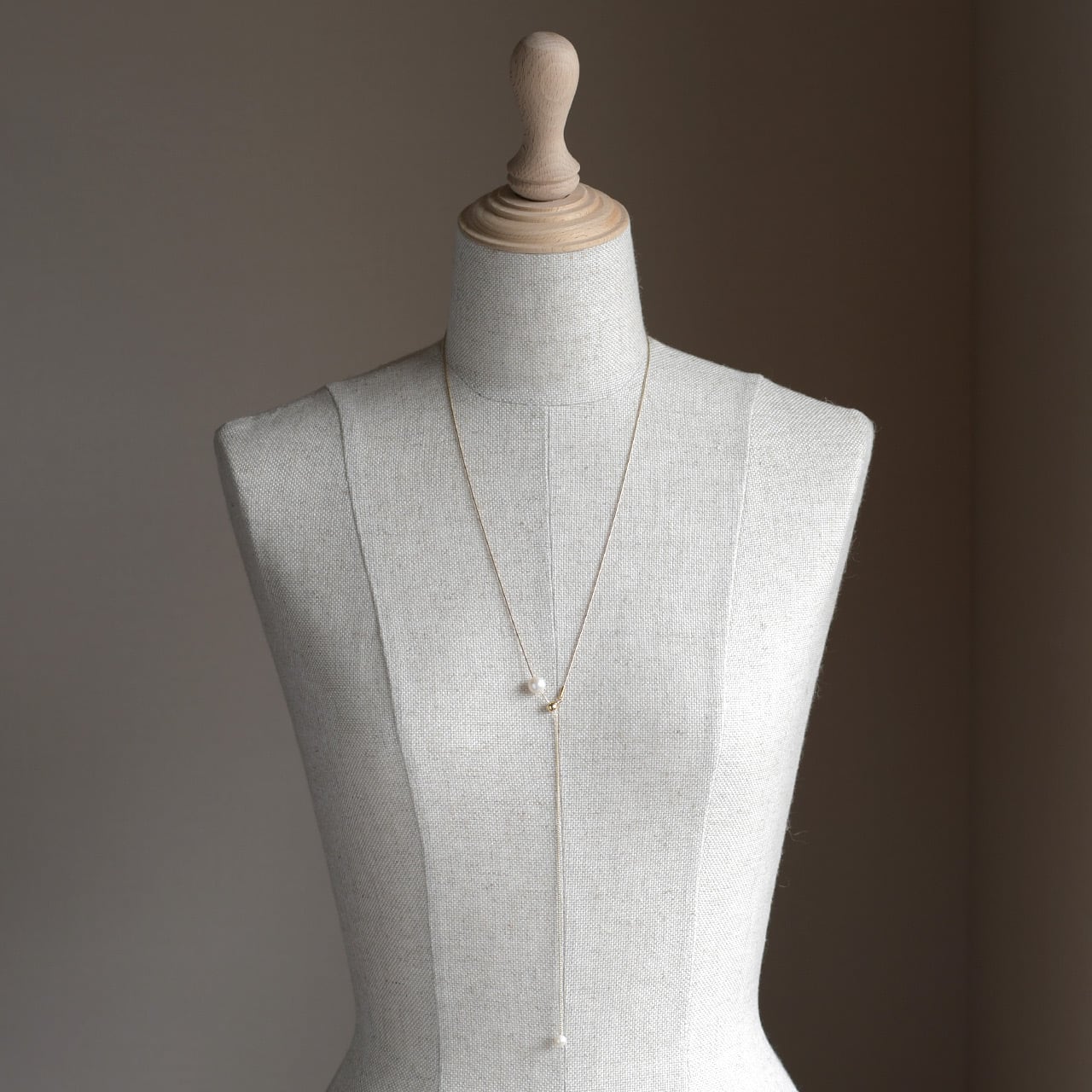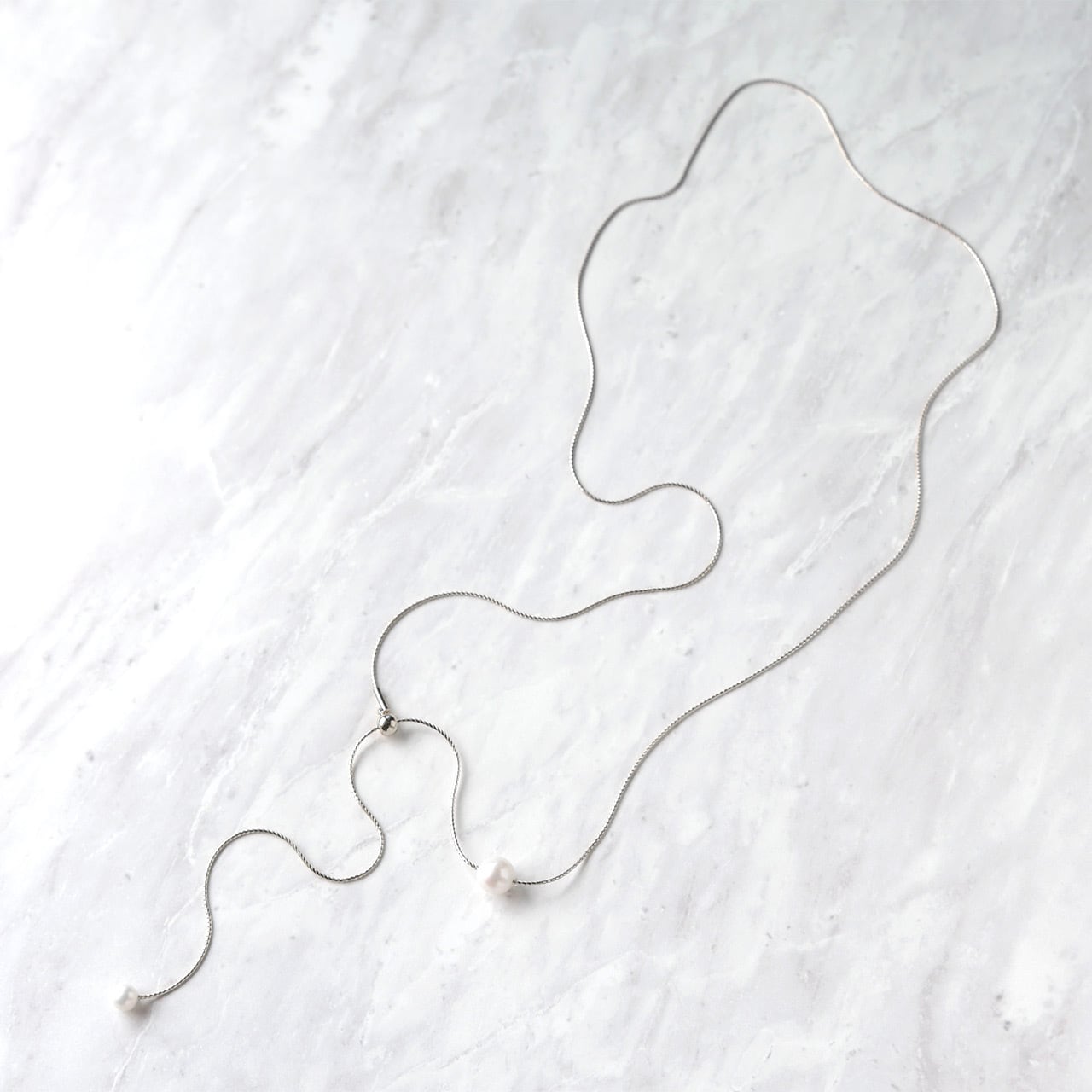 アレンジ自在 天然パール ラリエット ネックレス ゆるやかに 流れるようなシルエット / 淡水パール 75cm pe-167