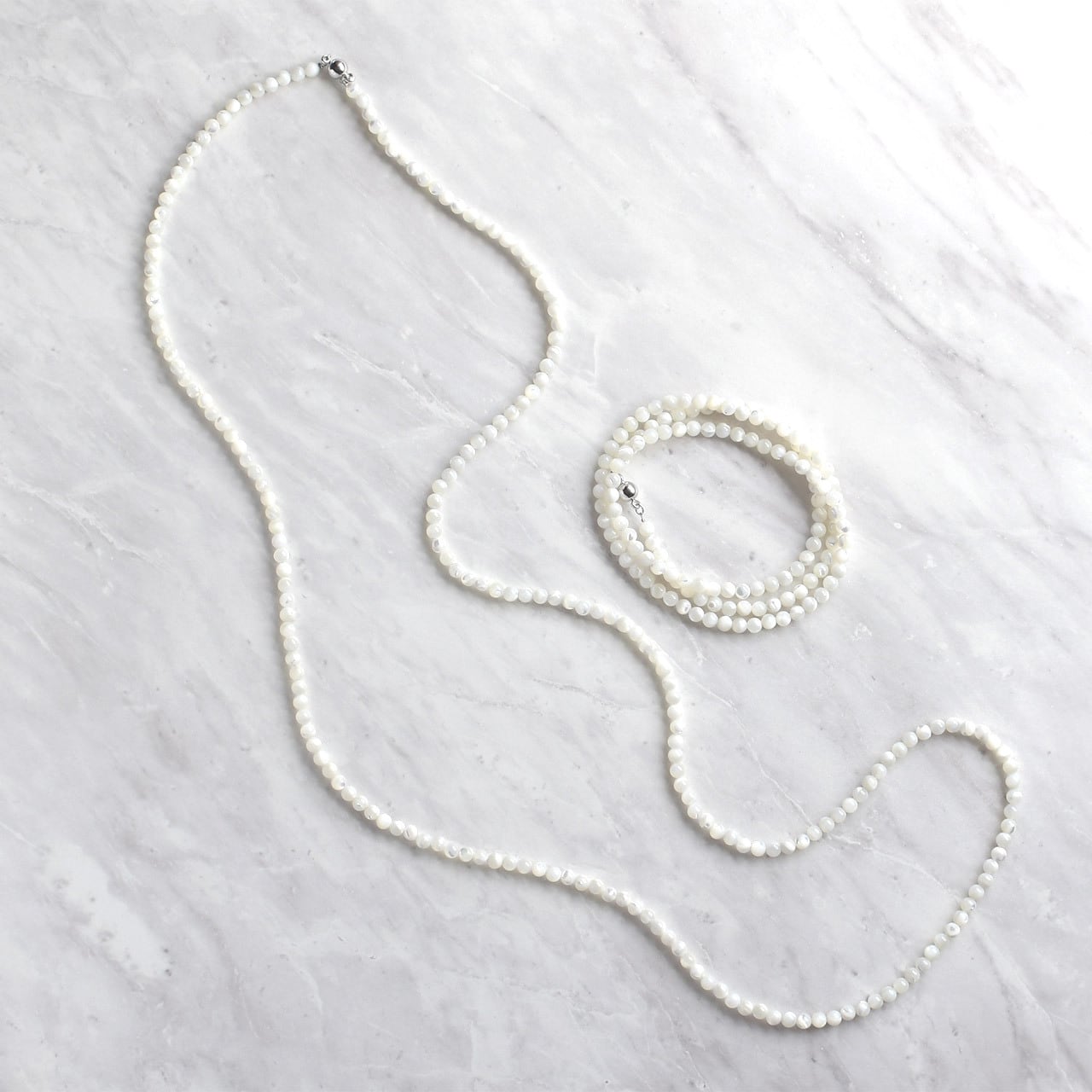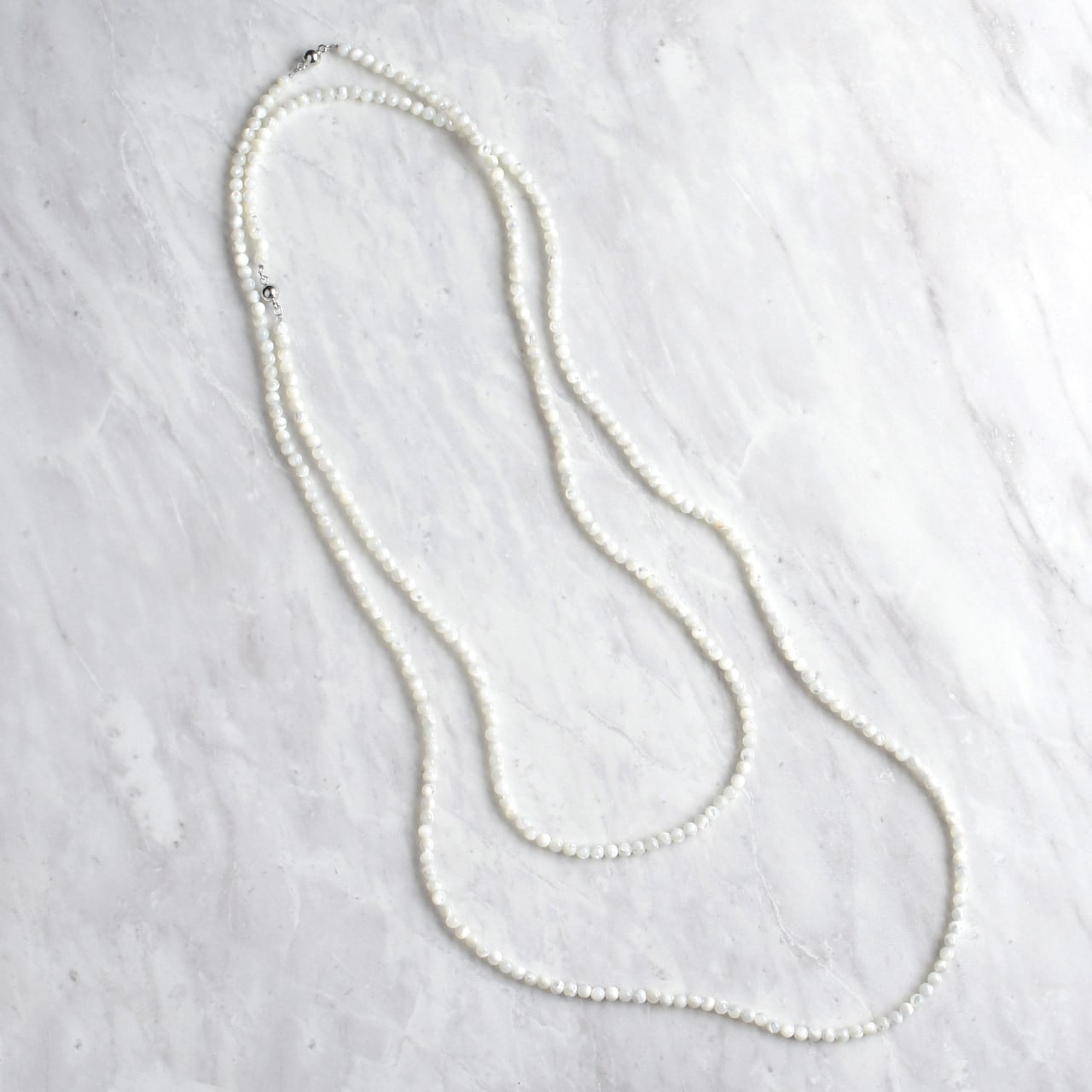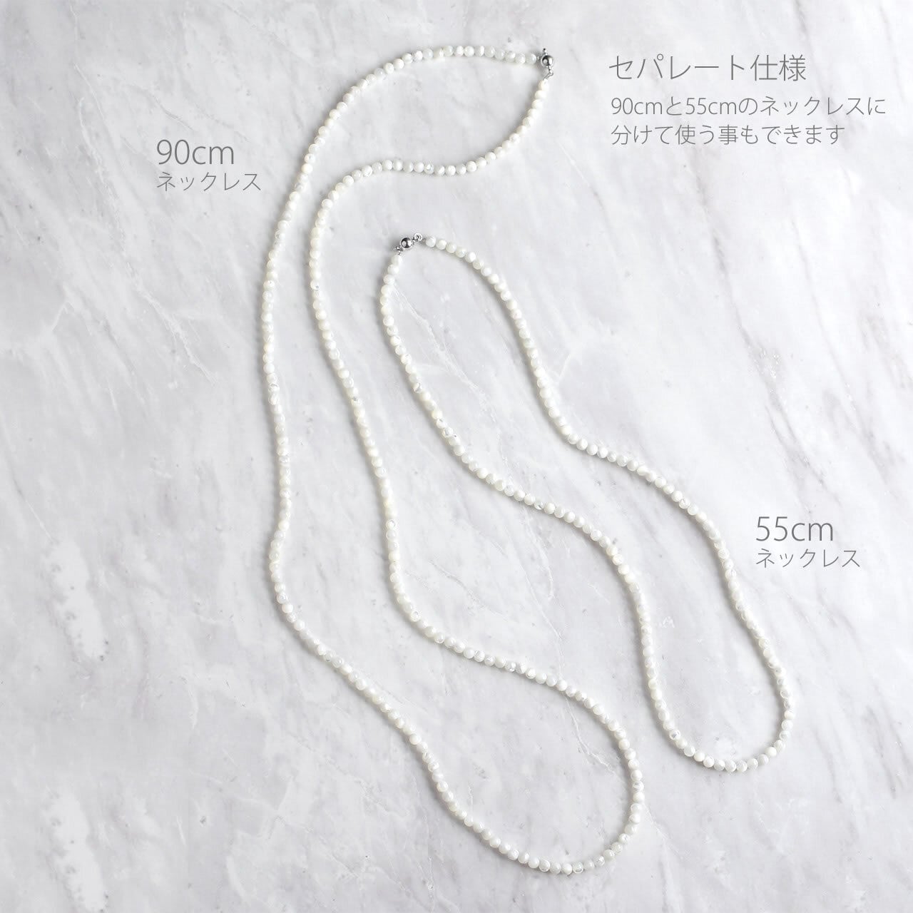 【3WAY 145cm】ロングネックレス セパレート仕様 ラウンド マザーオブパール / 天然シェル 真珠層 パール風 ホワイト レディース フォーマル 普段使い 結婚式 卒業式 入学式 ギフト / pe-173