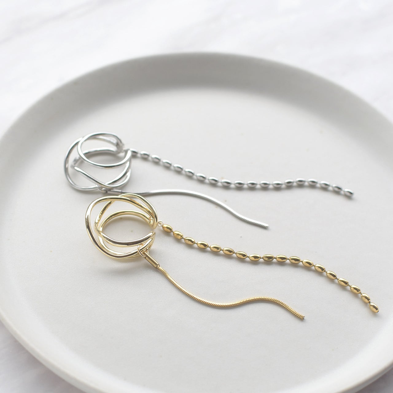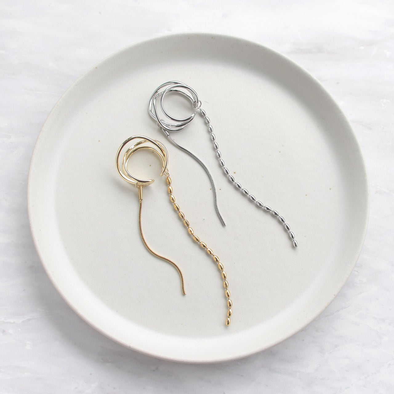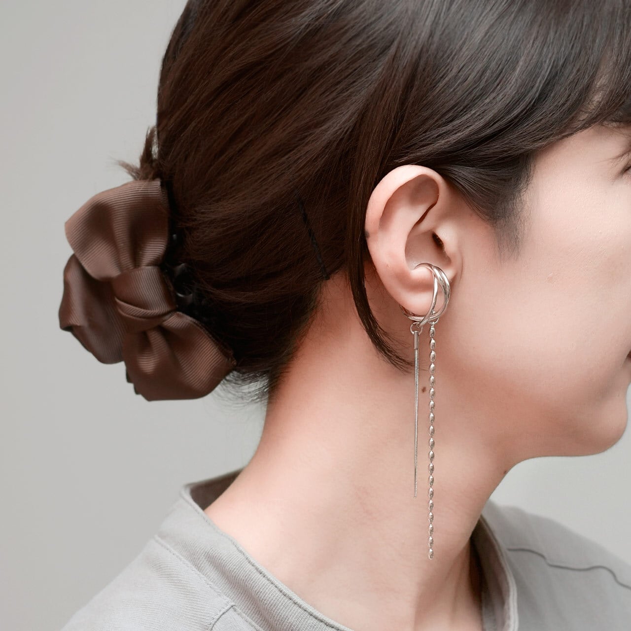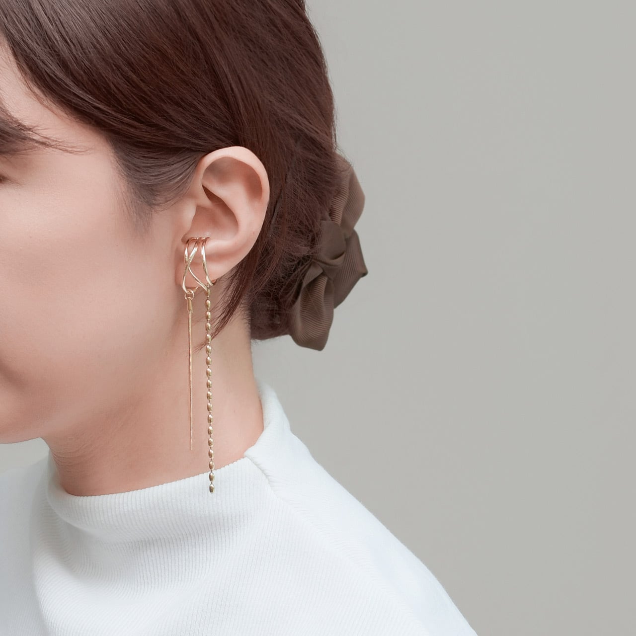 2WAY 前後で魅せる クロスライン リバーシブル ロングチェーン イヤーカフ / cf-080
