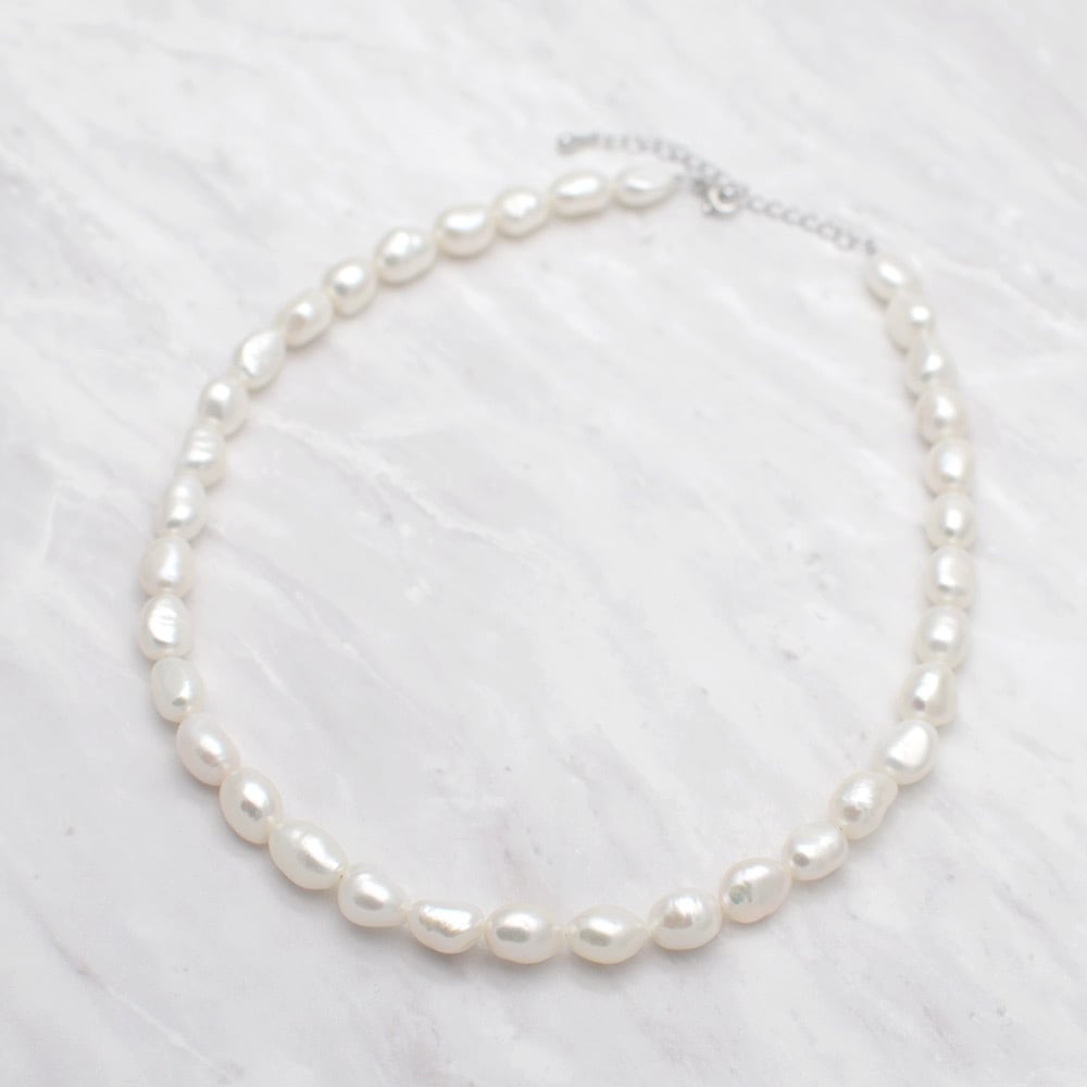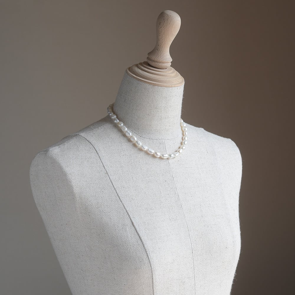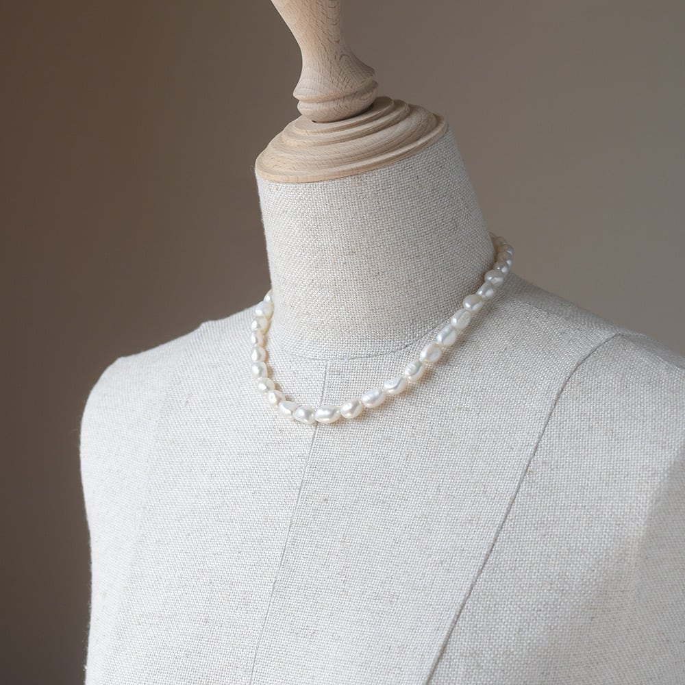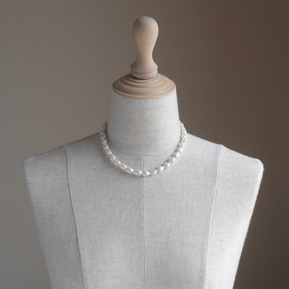 オーバル バロック 淡水パール 大粒 ネックレス 約8.0mm / サージカルステンレス製 K14GFオプション可 pe-186