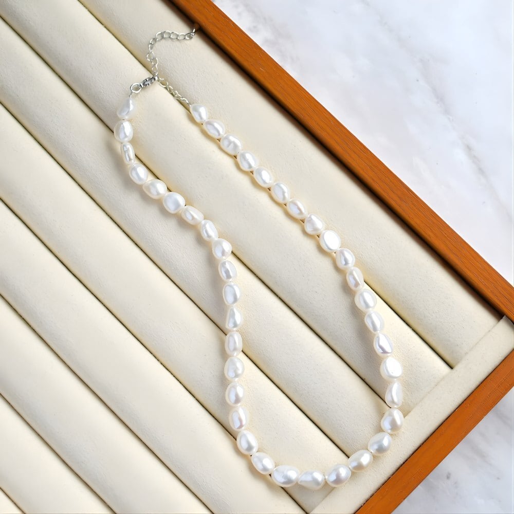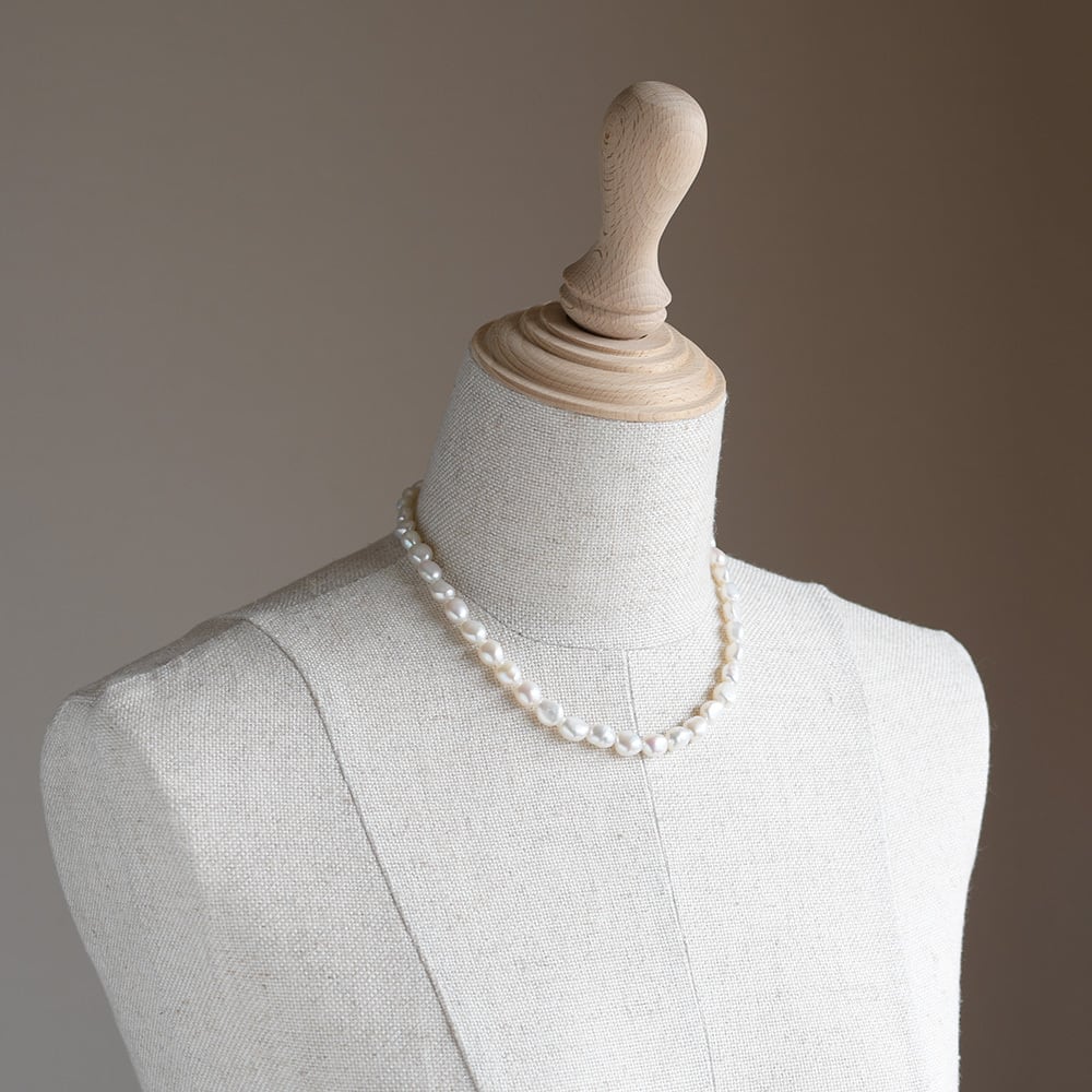 オーバル バロック 淡水パール ネックレス 7.0-8.0mm / サージカルステンレス製 K14GFオプション可 / pe-186