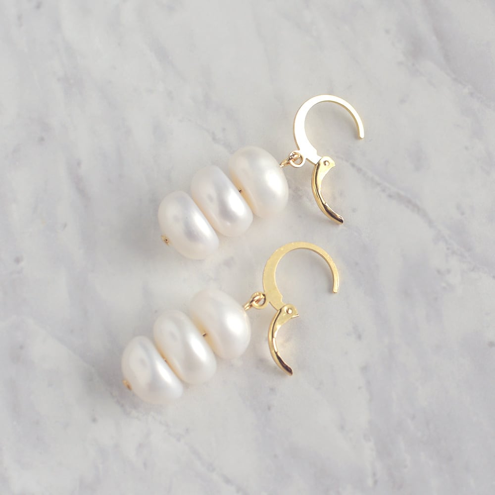 ころんと愛らしい 3粒 淡水パール レバーバックピアス サージカルステンレス / ps-153