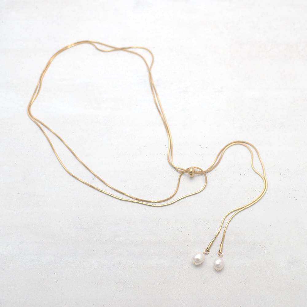 やわらかに艶めく バロックパール 120cm ロングラリエット サージカルステンレス製 スネークチェーン 淡水パール / pe-190