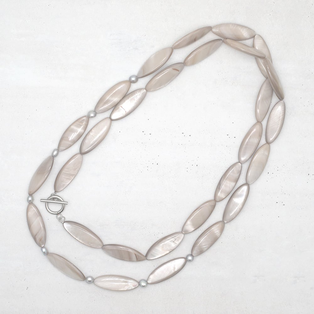 90cm ロングネックレス マーキスフォルム マザーオブパール 淡水パール 天然シェル / pe-191