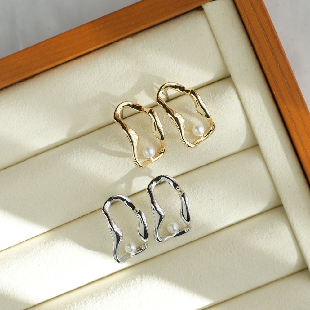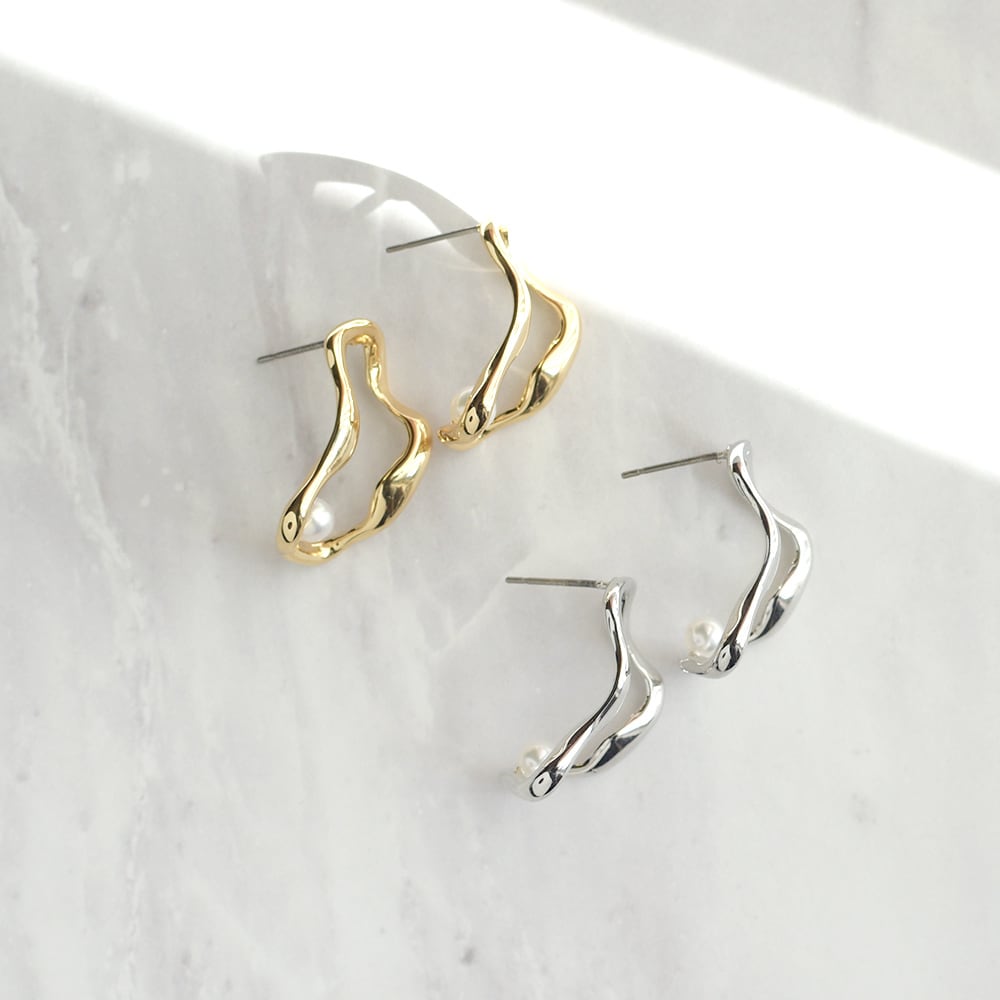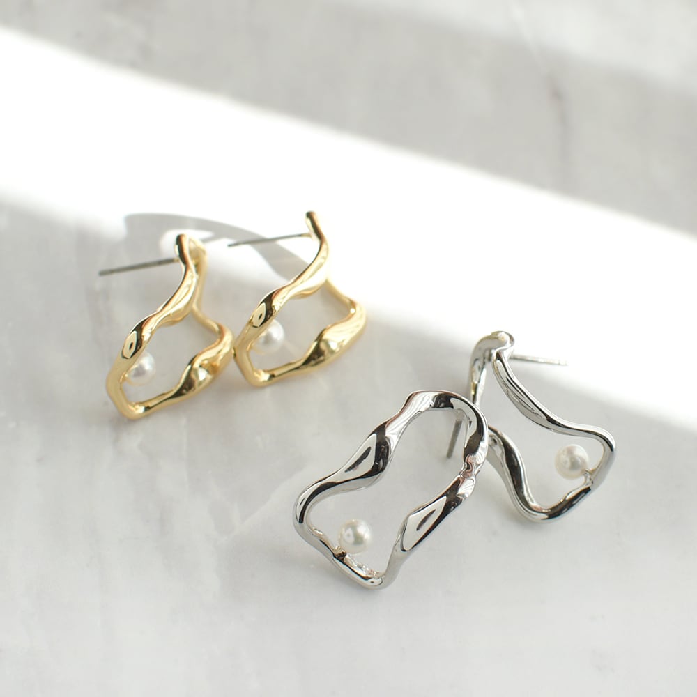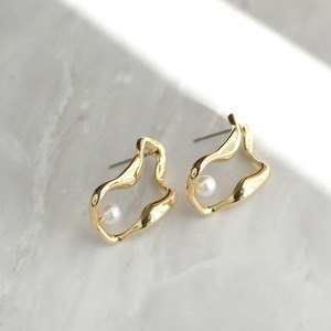 4.0mm 淡水パール × ニュアンスメタル デザインピアス チタンポストベビーパール / ps-158