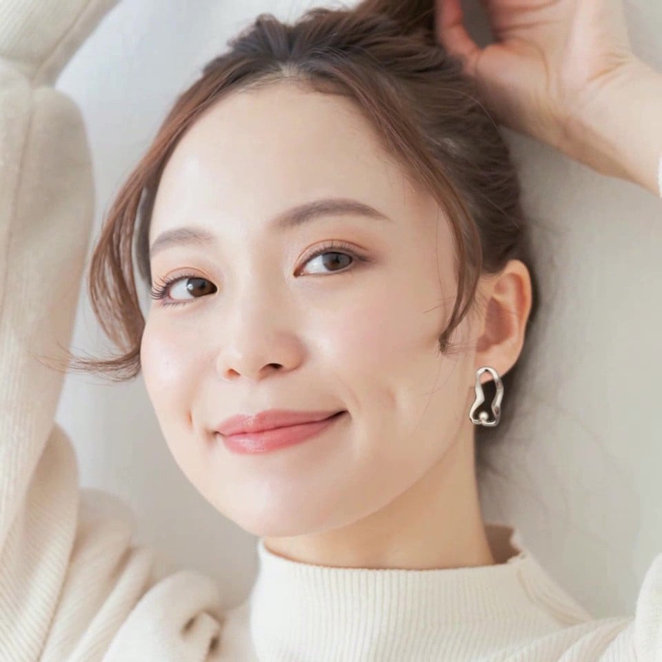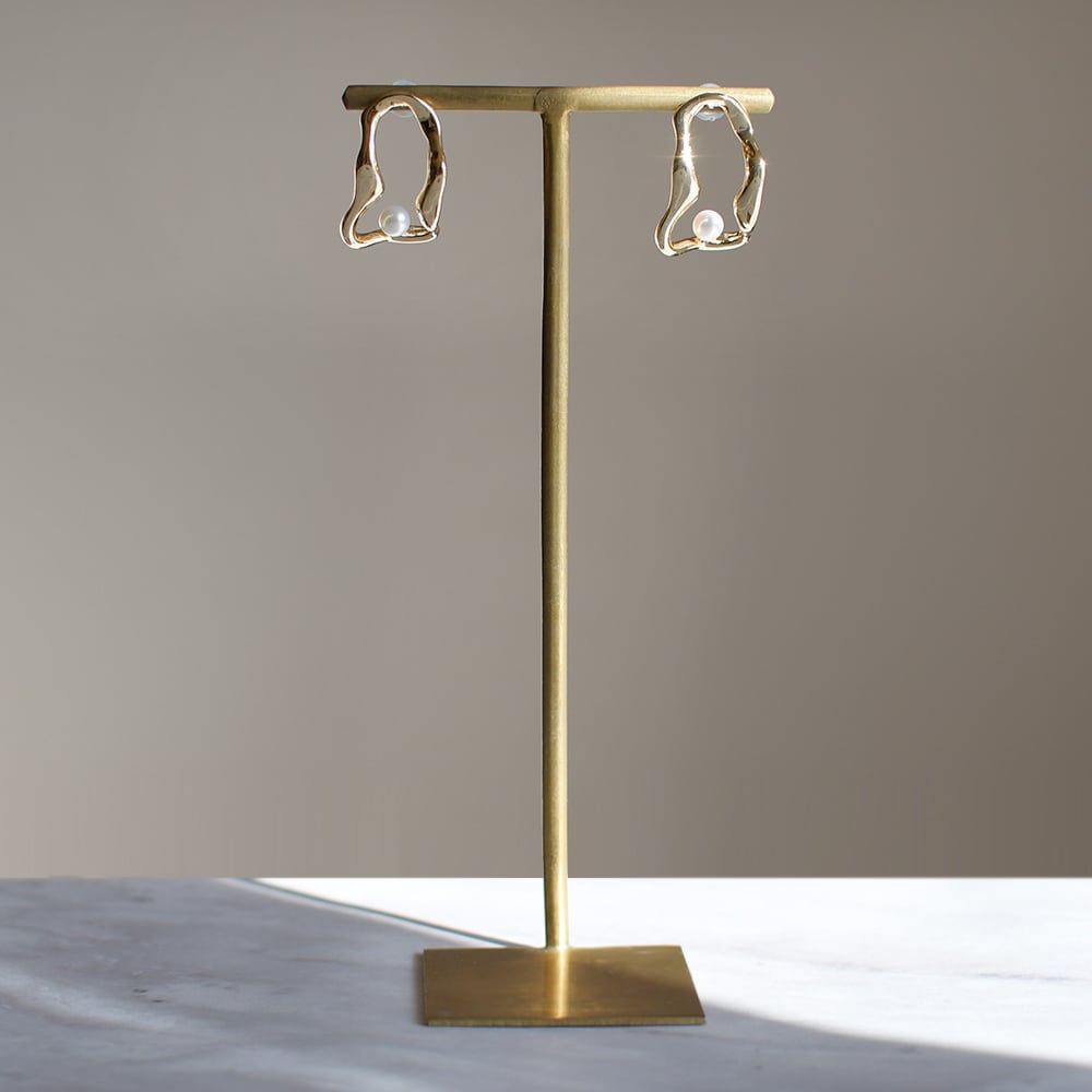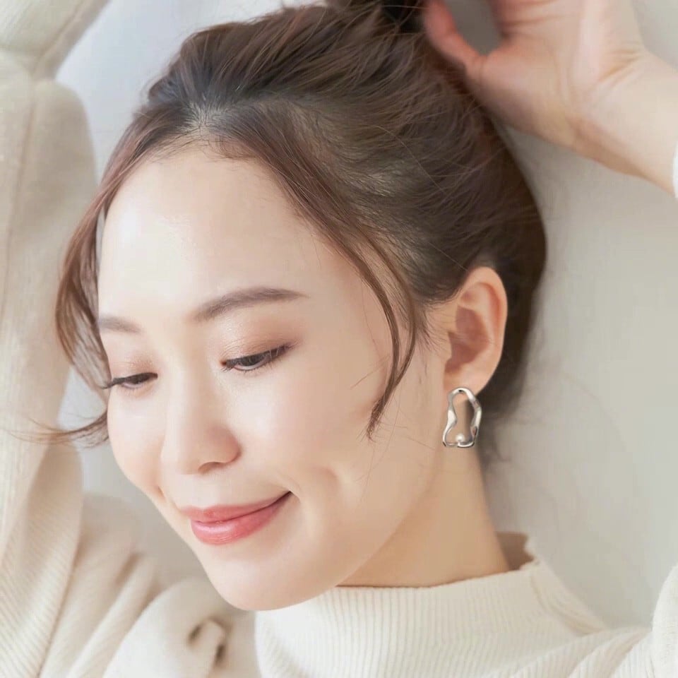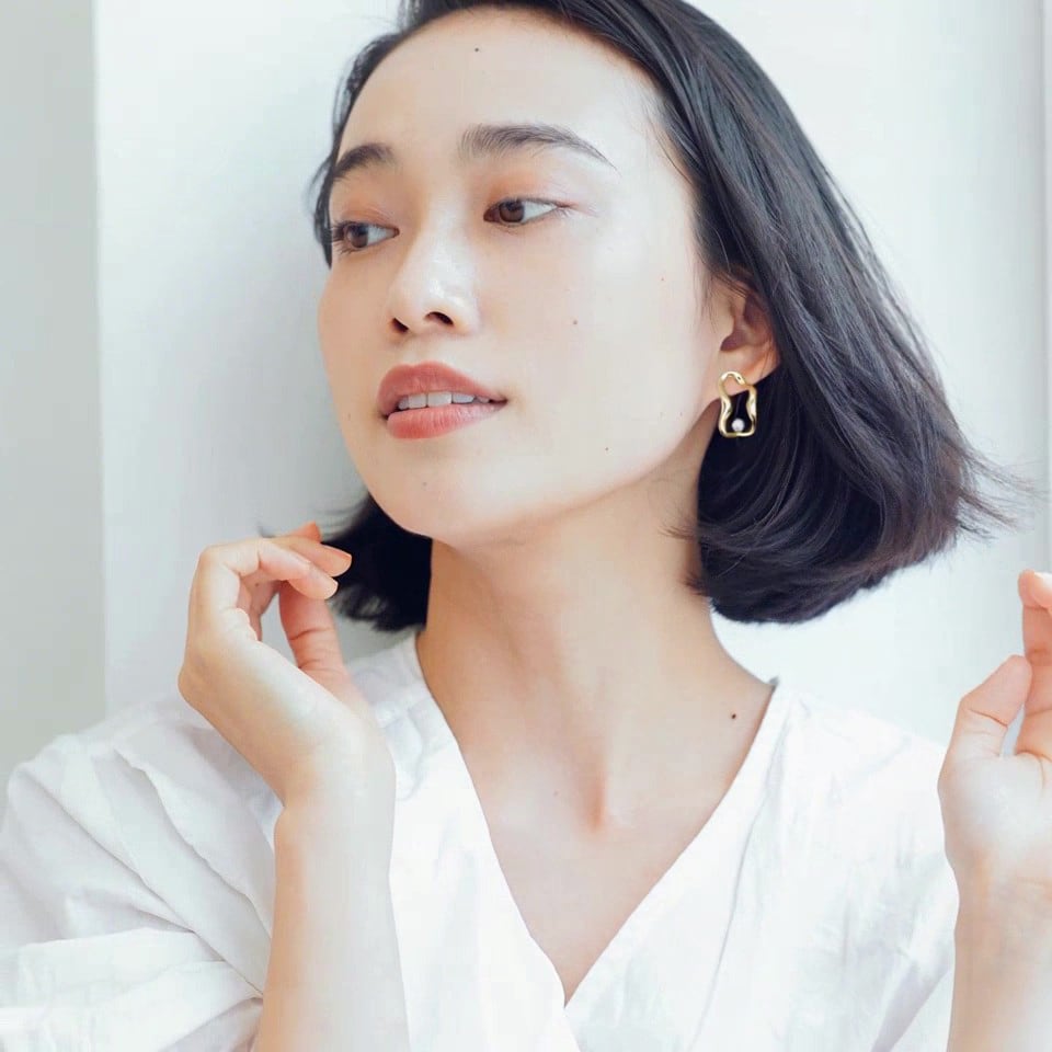 4.0mm 淡水パール × ニュアンスメタル デザインピアス チタンポストベビーパール / ps-158