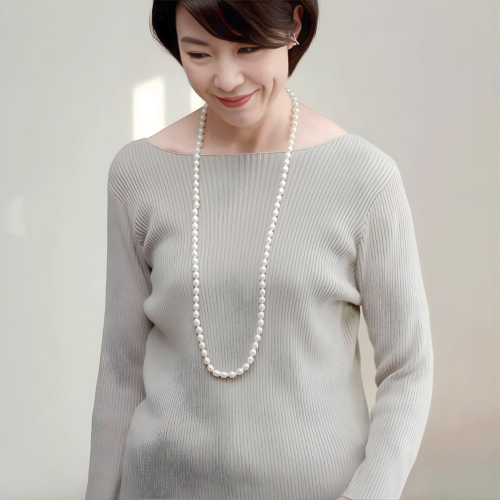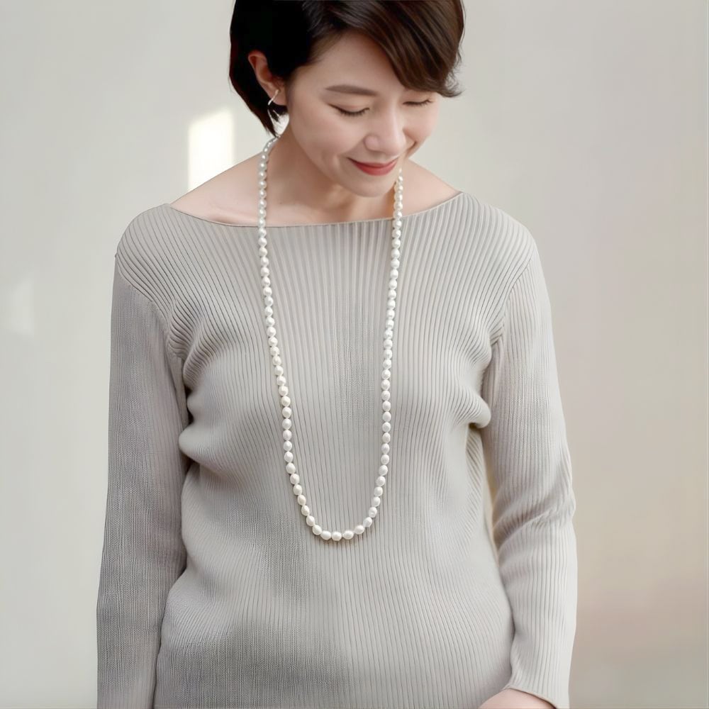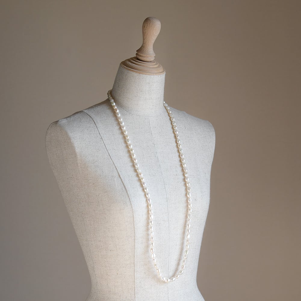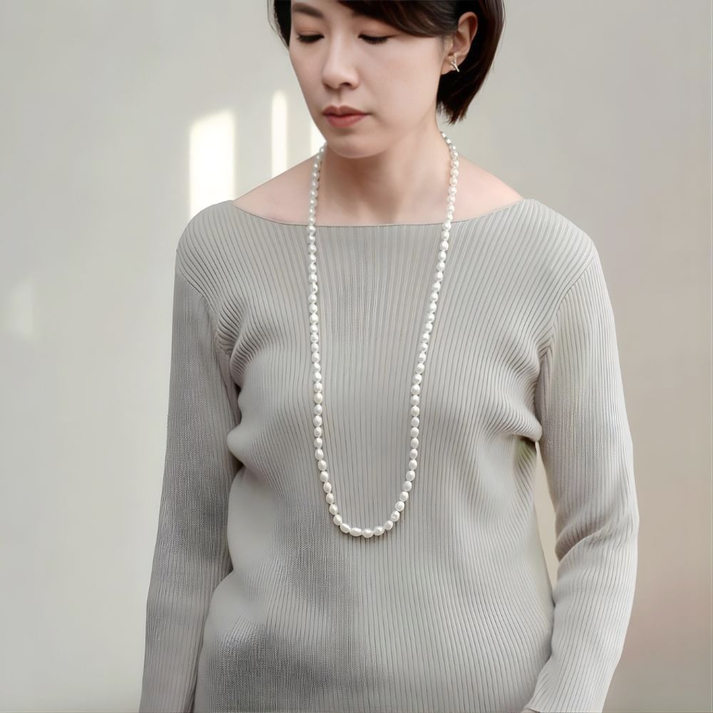 贅沢に連ねた 90cm 淡水バロックパール ロングネックレス マンテル サージカルステンレス製 / pe-196