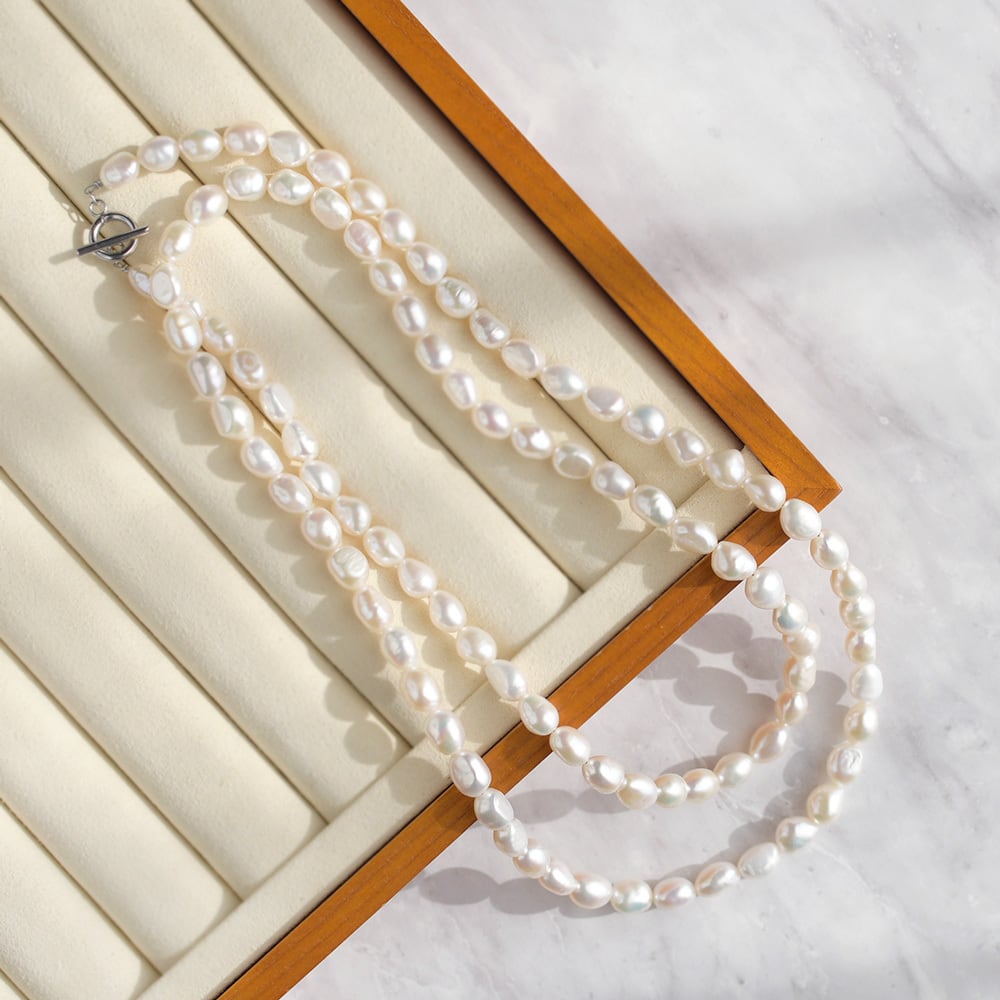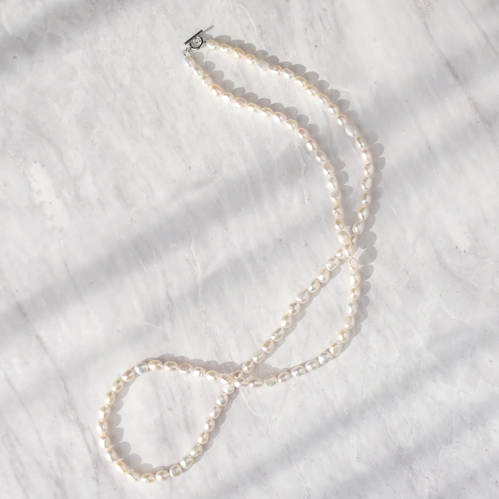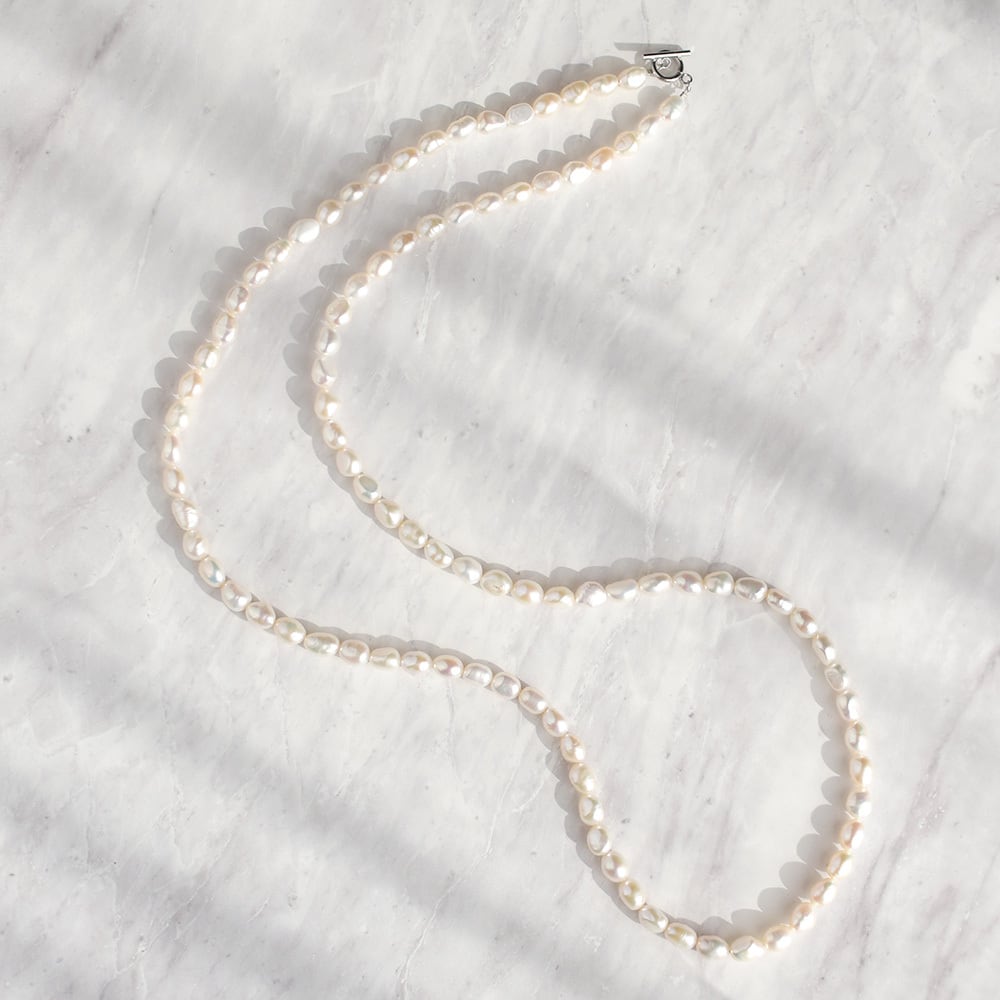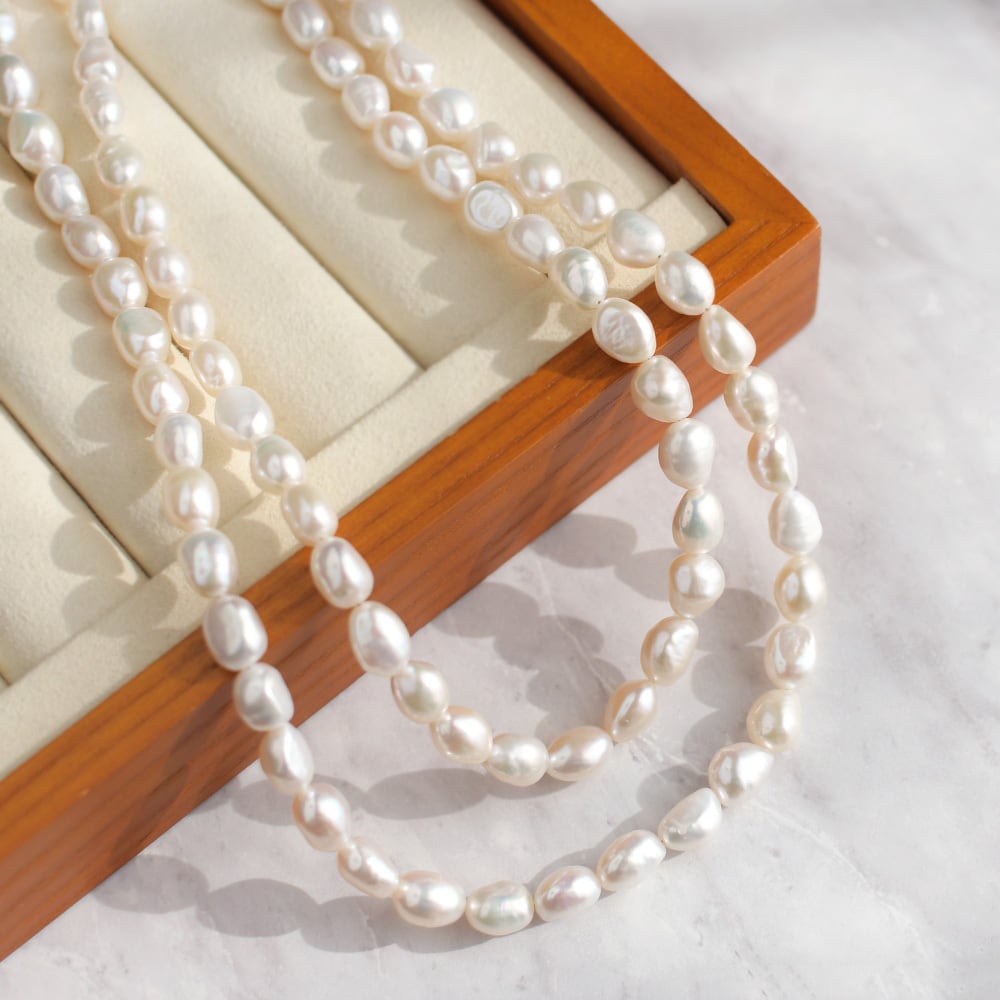 贅沢に連ねた 90cm 淡水バロックパール ロングネックレス マンテル サージカルステンレス製 / pe-196