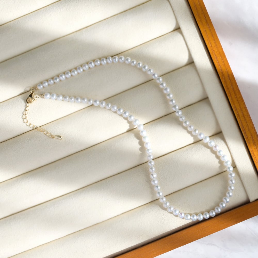 透明感ある 淡水 ベビーパール ネックレス サージカルステンレス製 K14GFオプション可 / pe-197