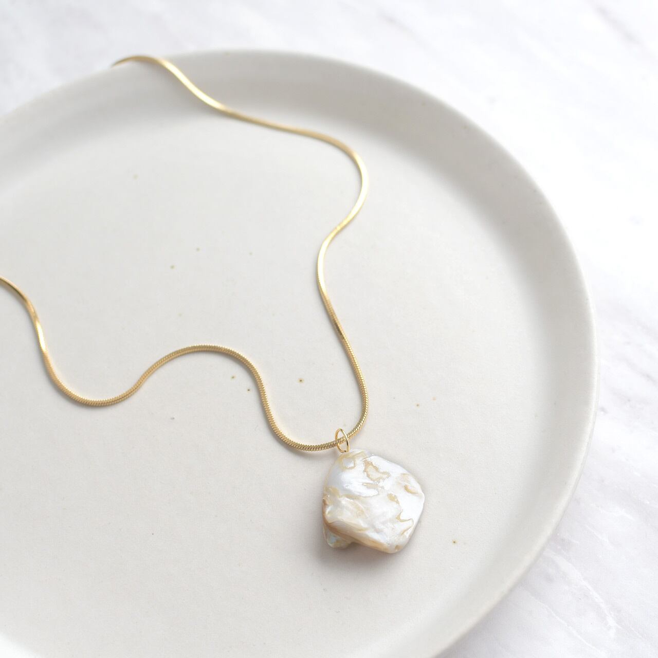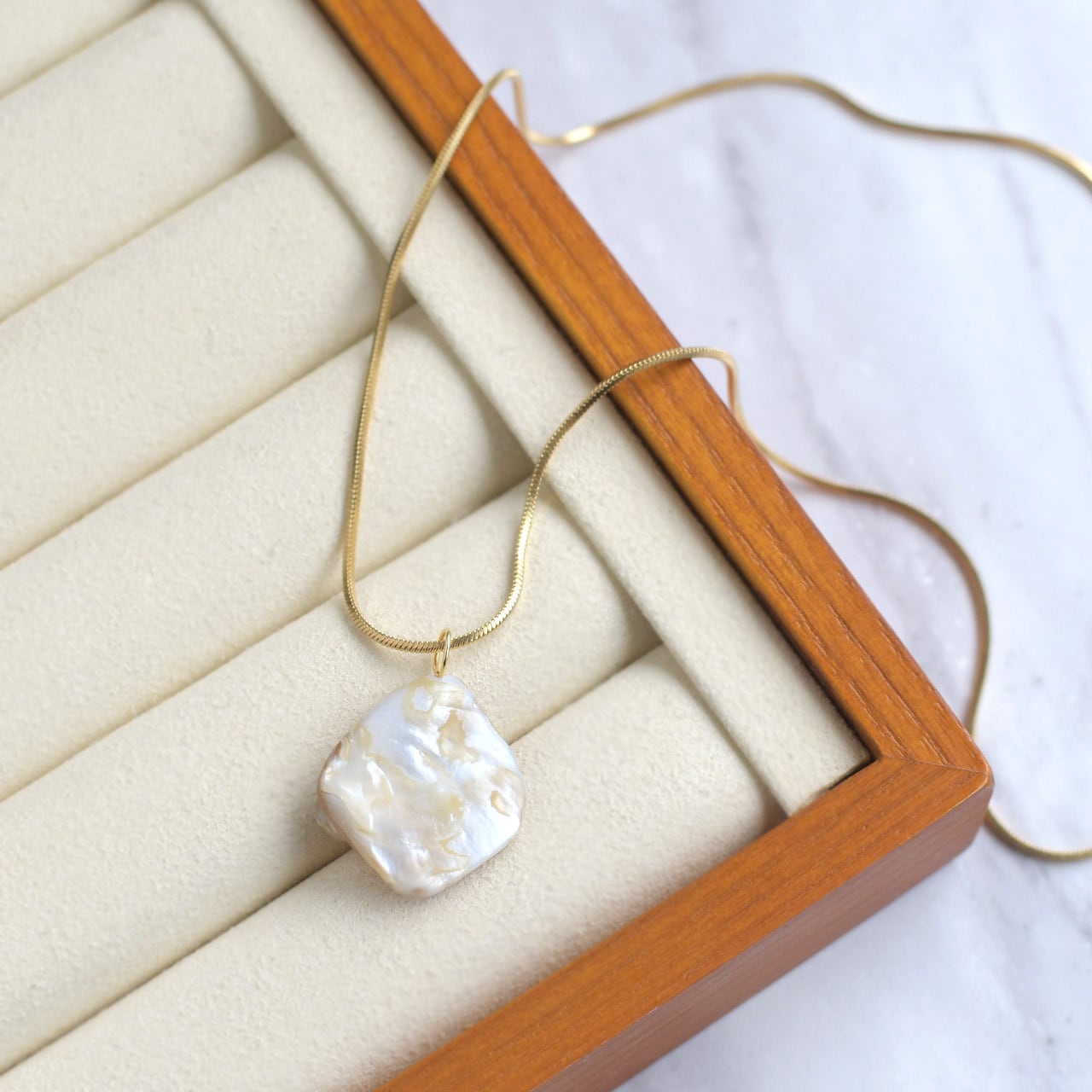 とろみのある艶と色 マザーオブパール ペンダント / サージカルステンレス製 50cm pe-028