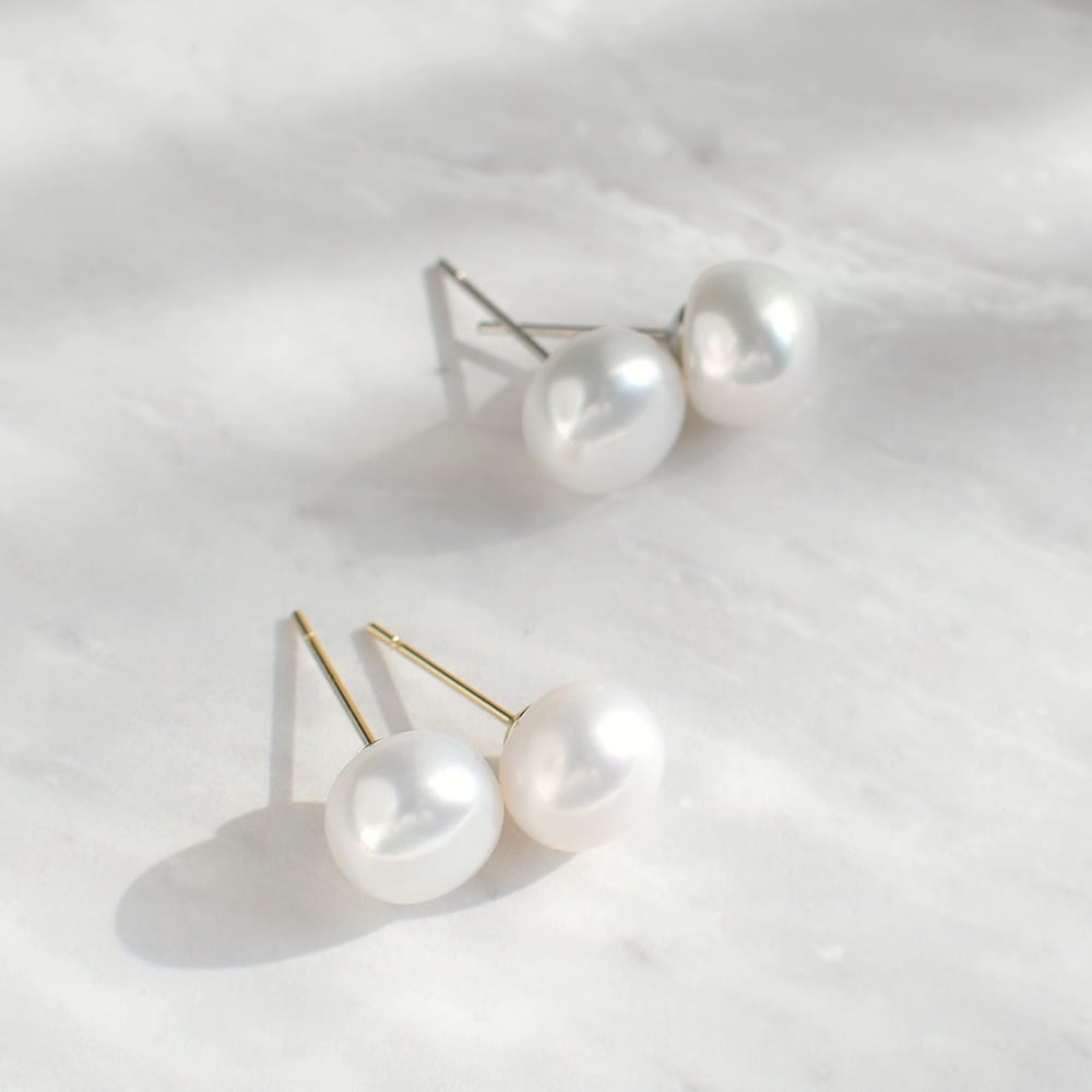 約9.0mm あいくるしいフォルム 淡水パール ホワイト ピアス イヤリング フォーマル対応 / ps-036