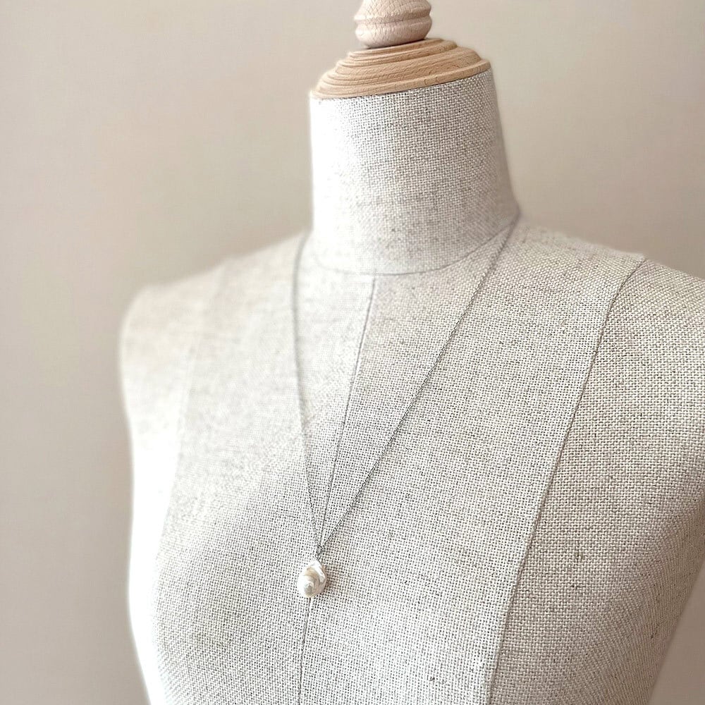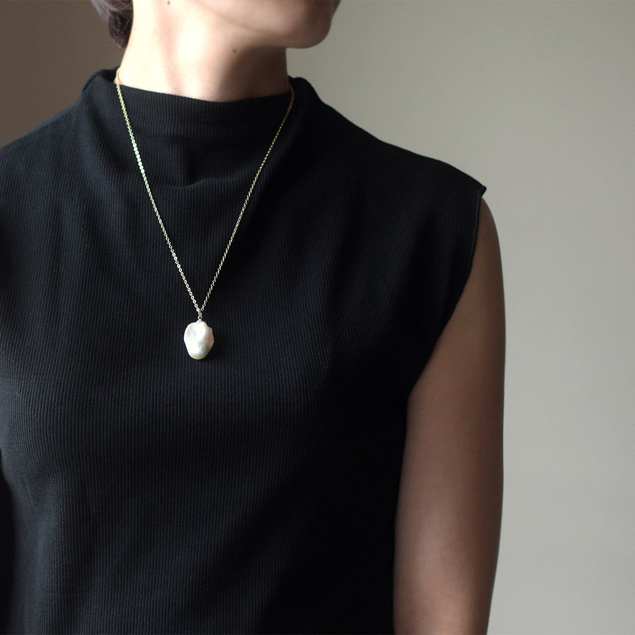 自然の造形美 大粒 バロック 淡水パール ペンダント / サージカルステンレス製 チェーン pe-057