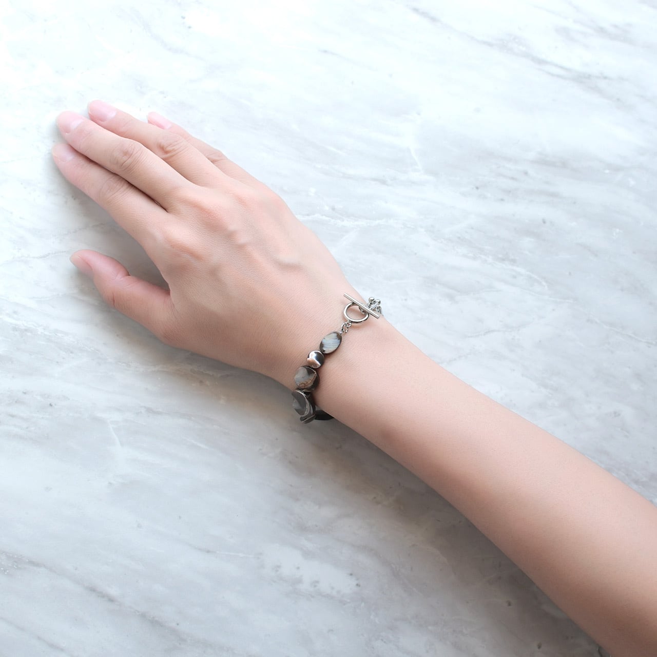 シェル × ホースシューチェーン ブレスレット / 黒蝶貝 シェル サージカルステンレス製 br-002