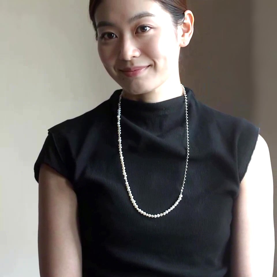アレンジ自在 バロック淡水パール × ボールチェーン ロングネックレス サージカルステンレス製 / pe-070