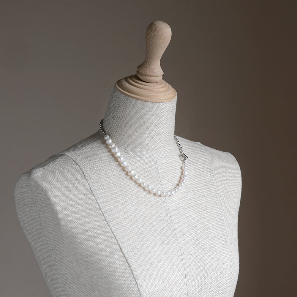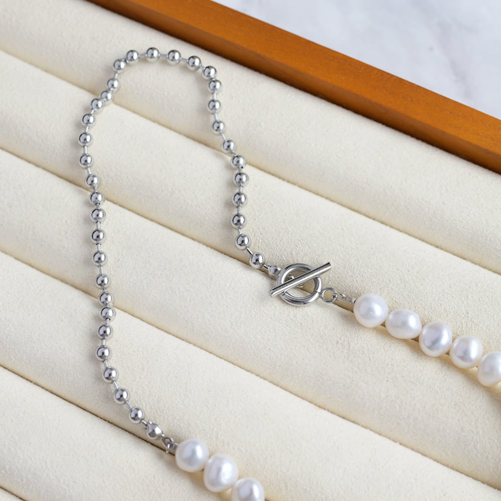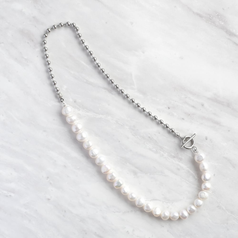ボールチェーン × バロック 淡水パール ネックレス 7.0-8.0mm サージカルステンレス / pe-071
