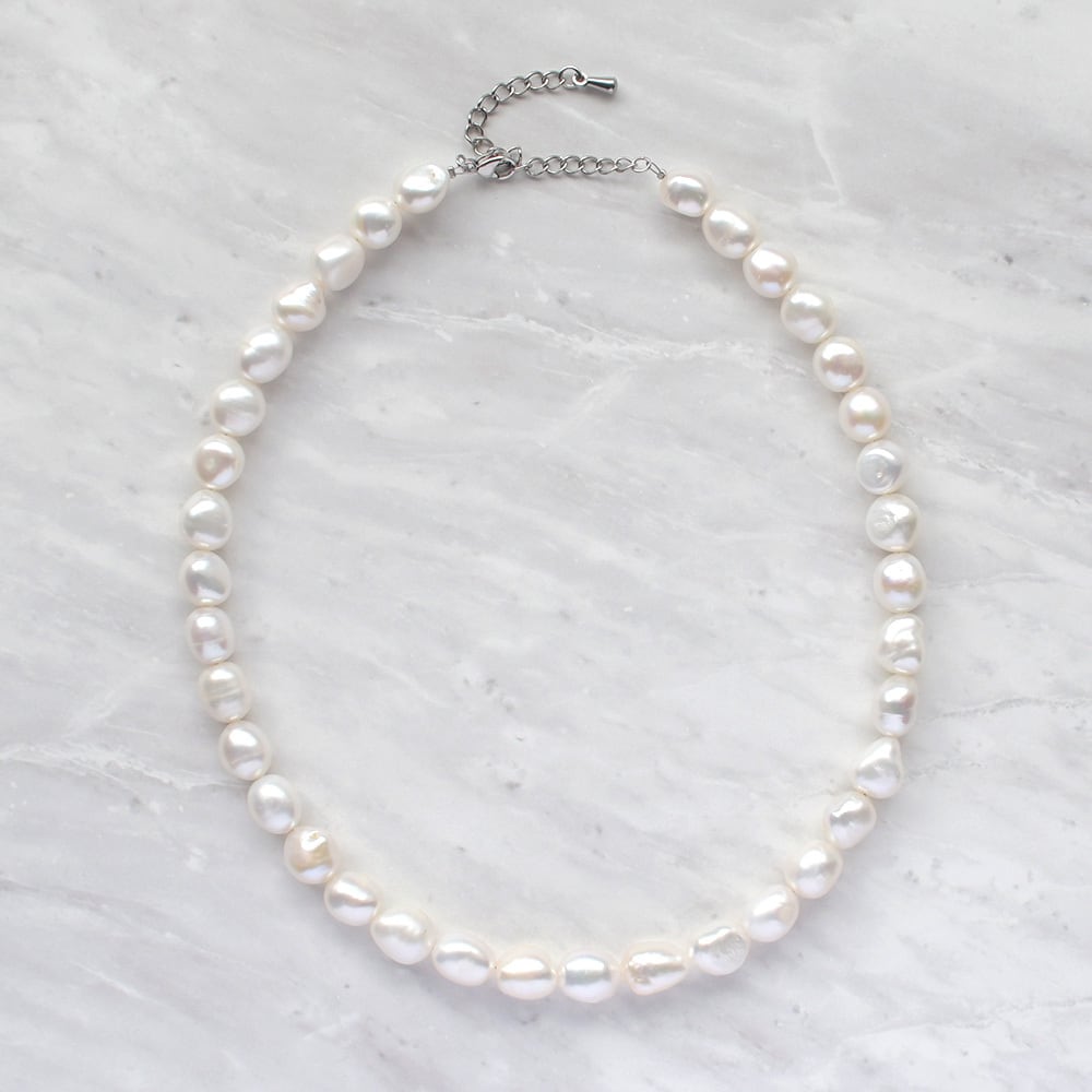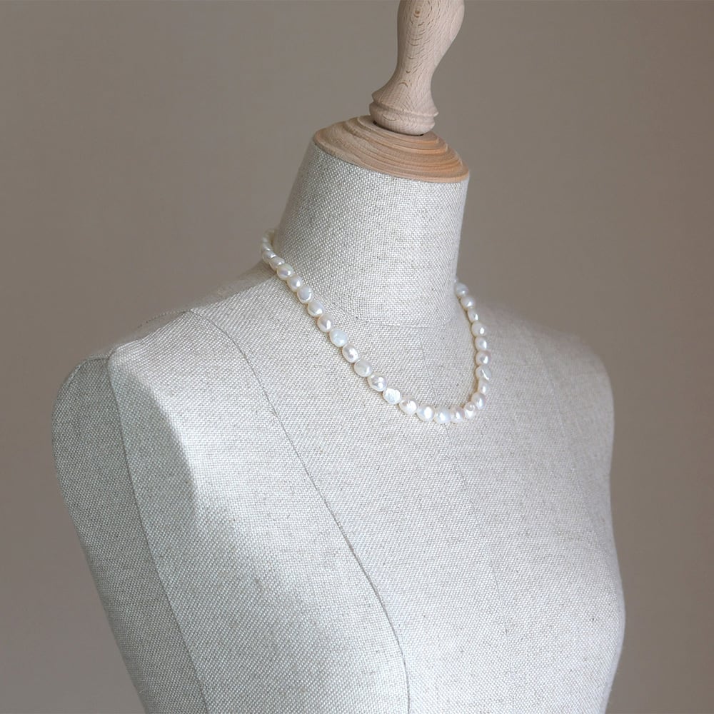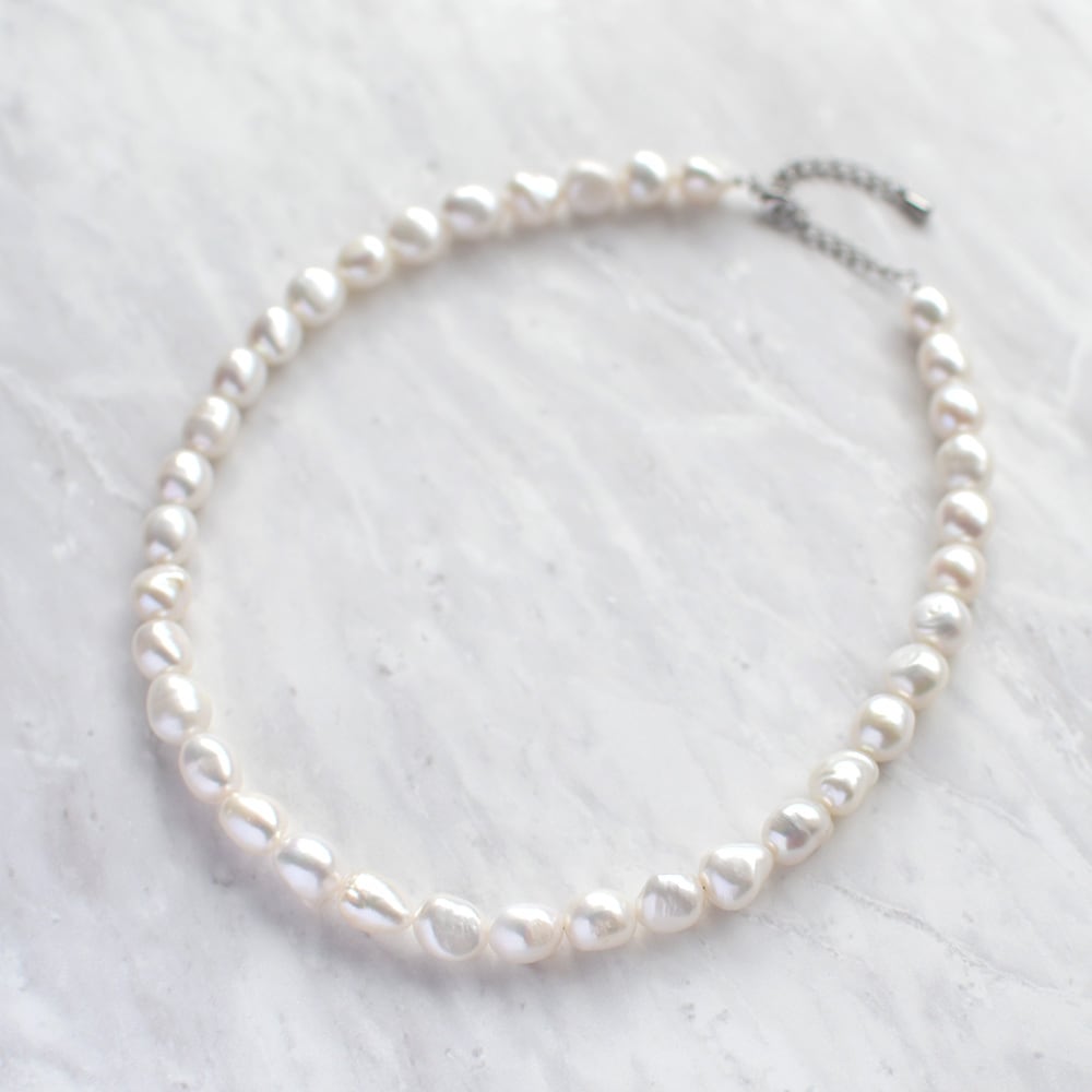 こなれ感ある存在感 大粒 約9.0mm バロックパール ネックレス 淡水パール / pe-078