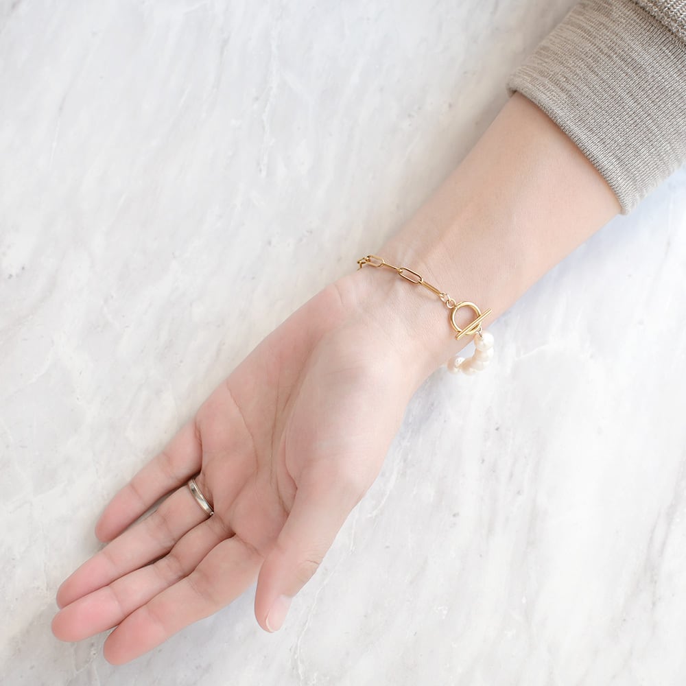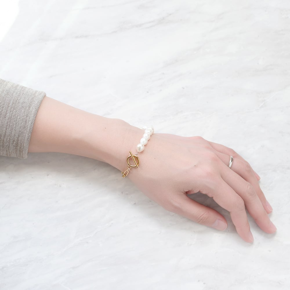 上質な天然パール クリップチェーン ブレスレット 淡水パール サージカルステンレス製 / br-005