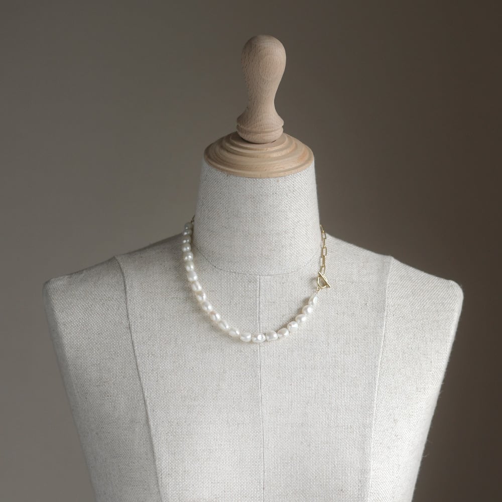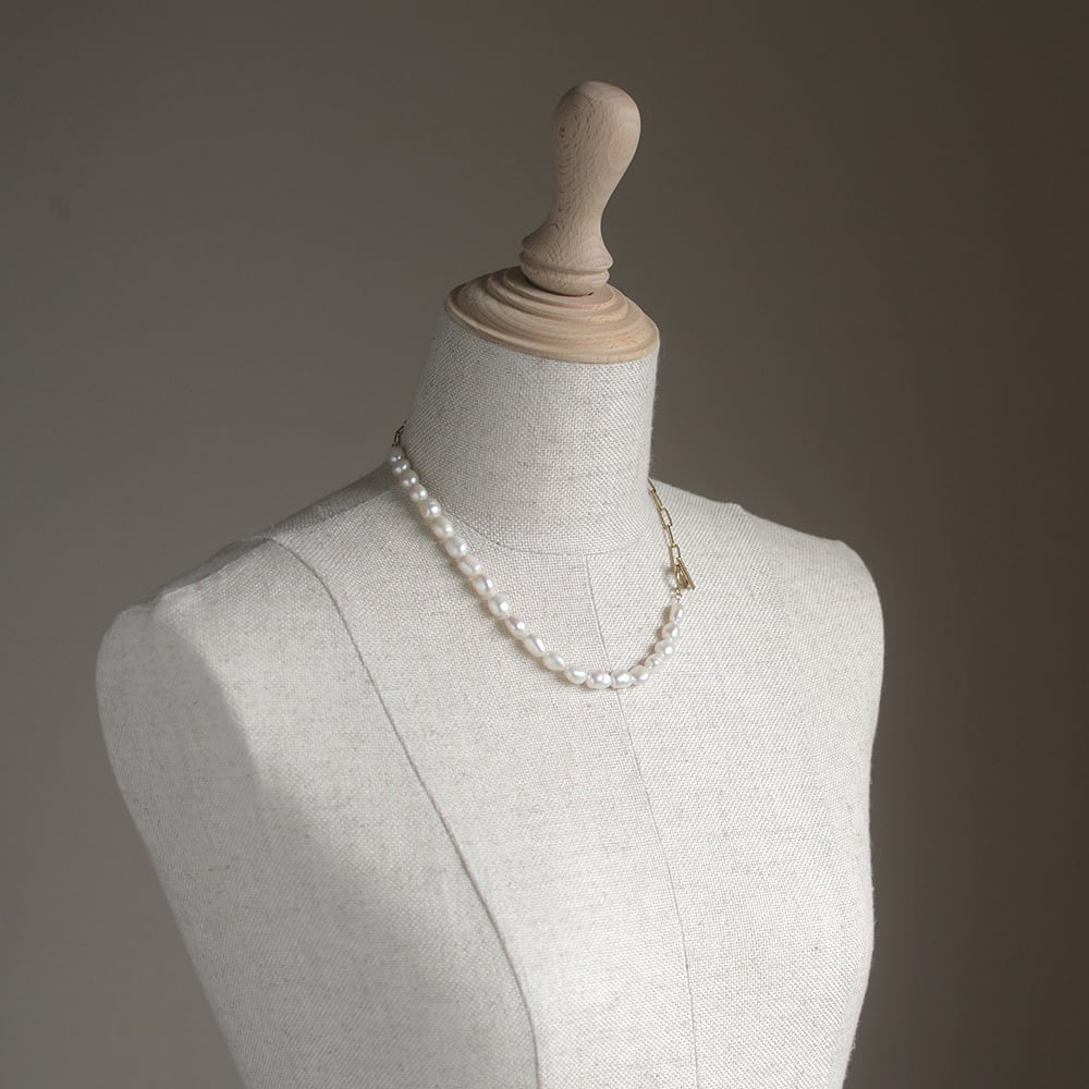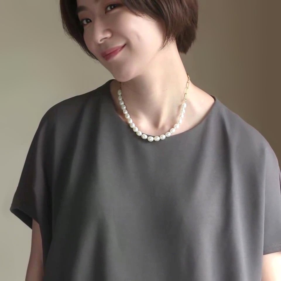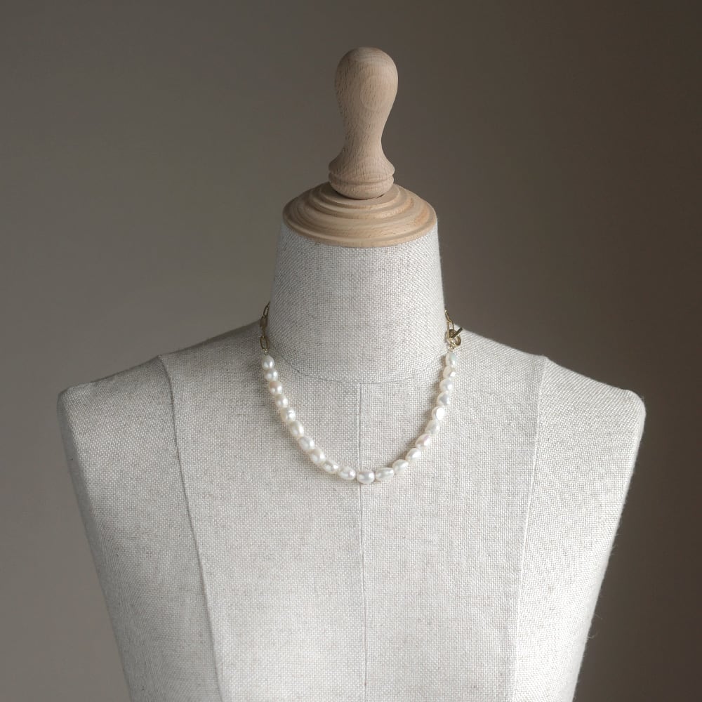 クリップチェーン × バロック 淡水パール ネックレス 7.0-8.0mm サージカルステンレス / pe-088