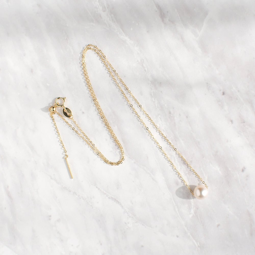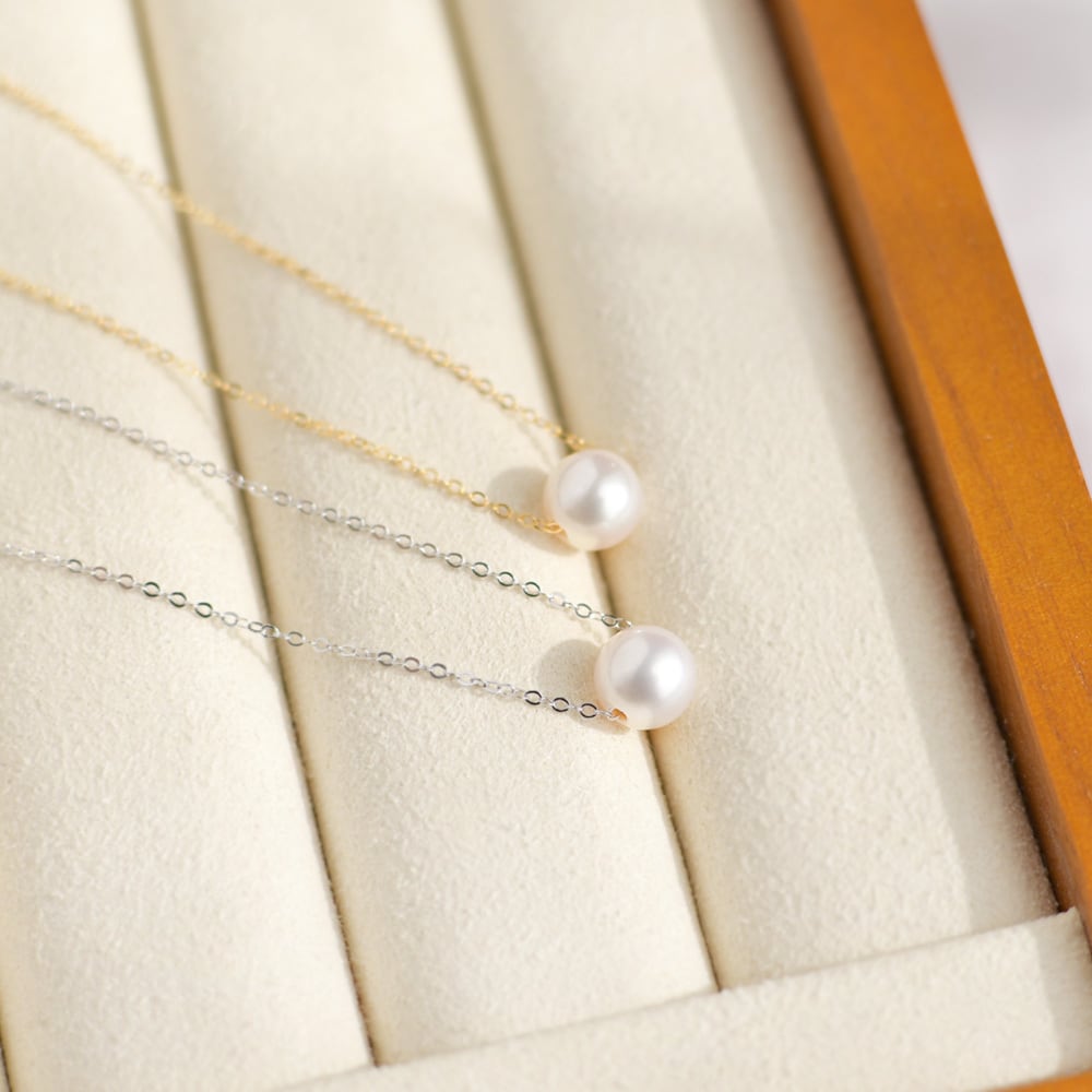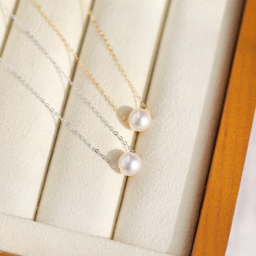普遍的なうつくしさ あこや真珠 7.0-7.5mm SV製 スルーネックレス 45cm スライドチェーン / pe-094