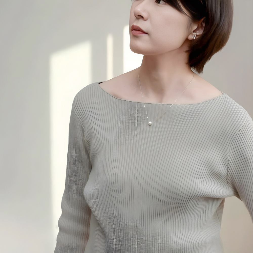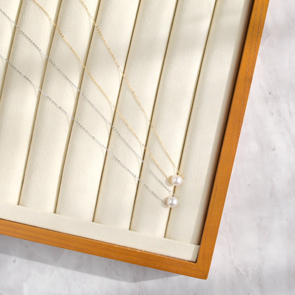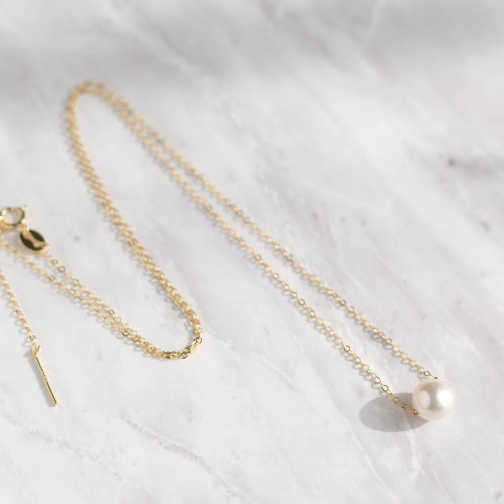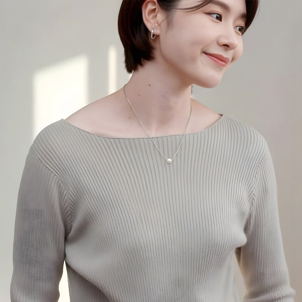 普遍的なうつくしさ あこや真珠 7.0-7.5mm SV製 スルーネックレス 45cm スライドチェーン / pe-094