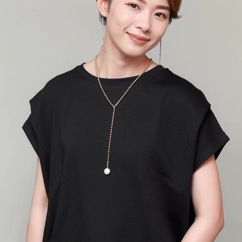 アレンジ自在 バロックパール ネックレス 淡水パール ボールチェーン サージカルステンレス / pe-097