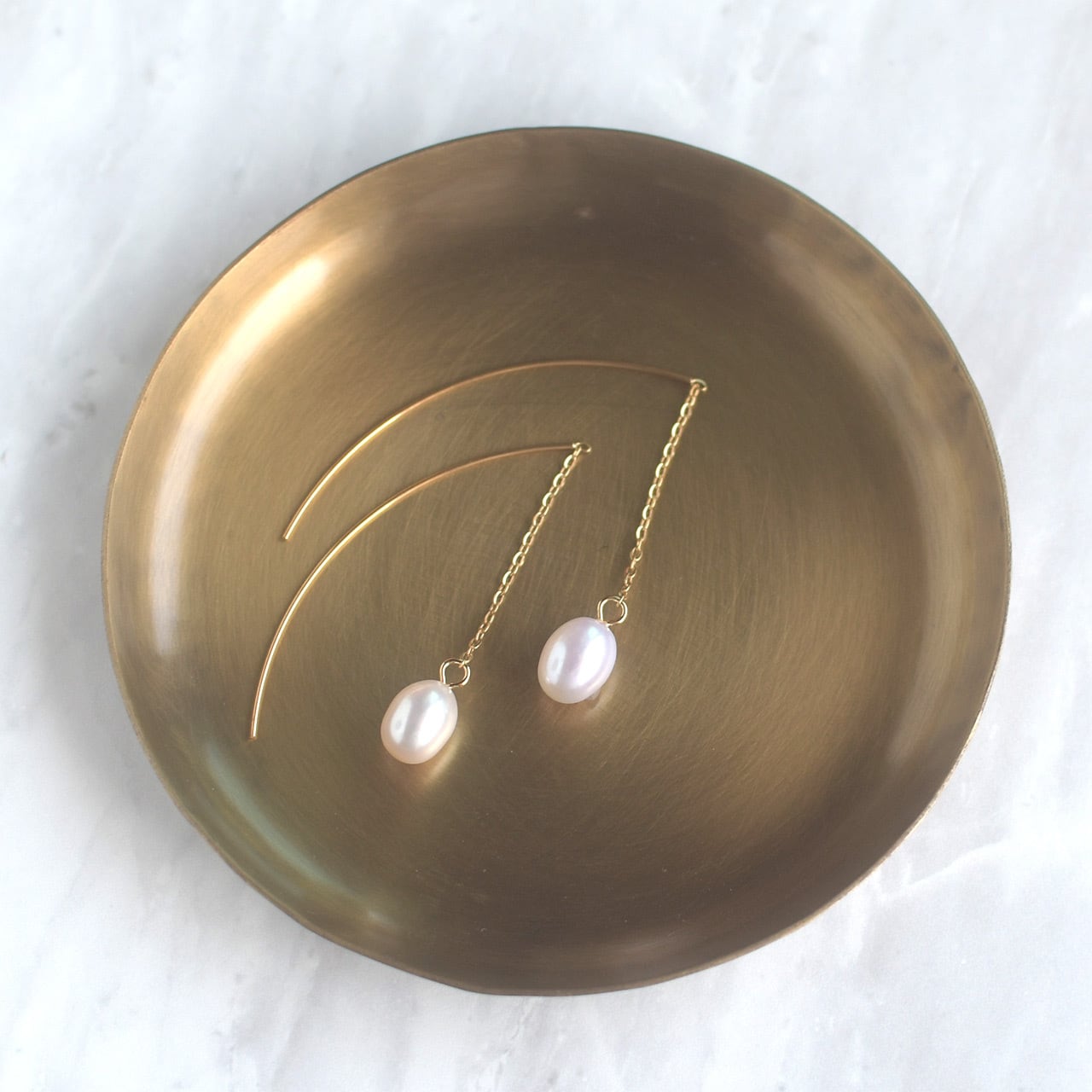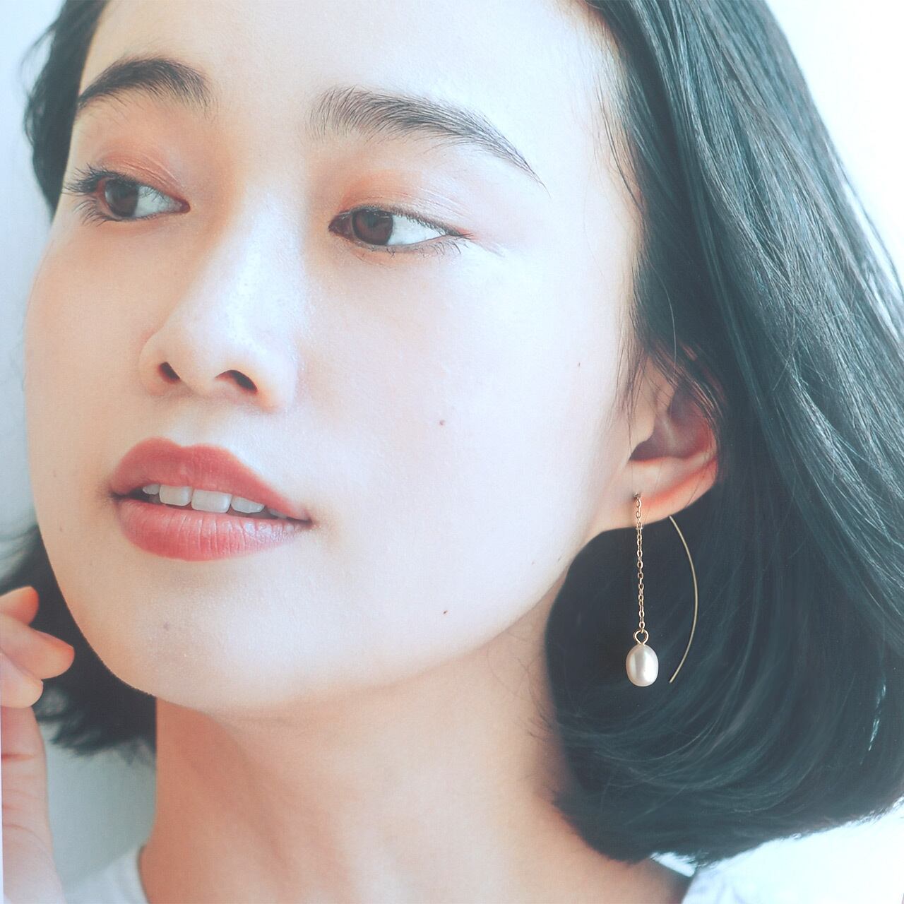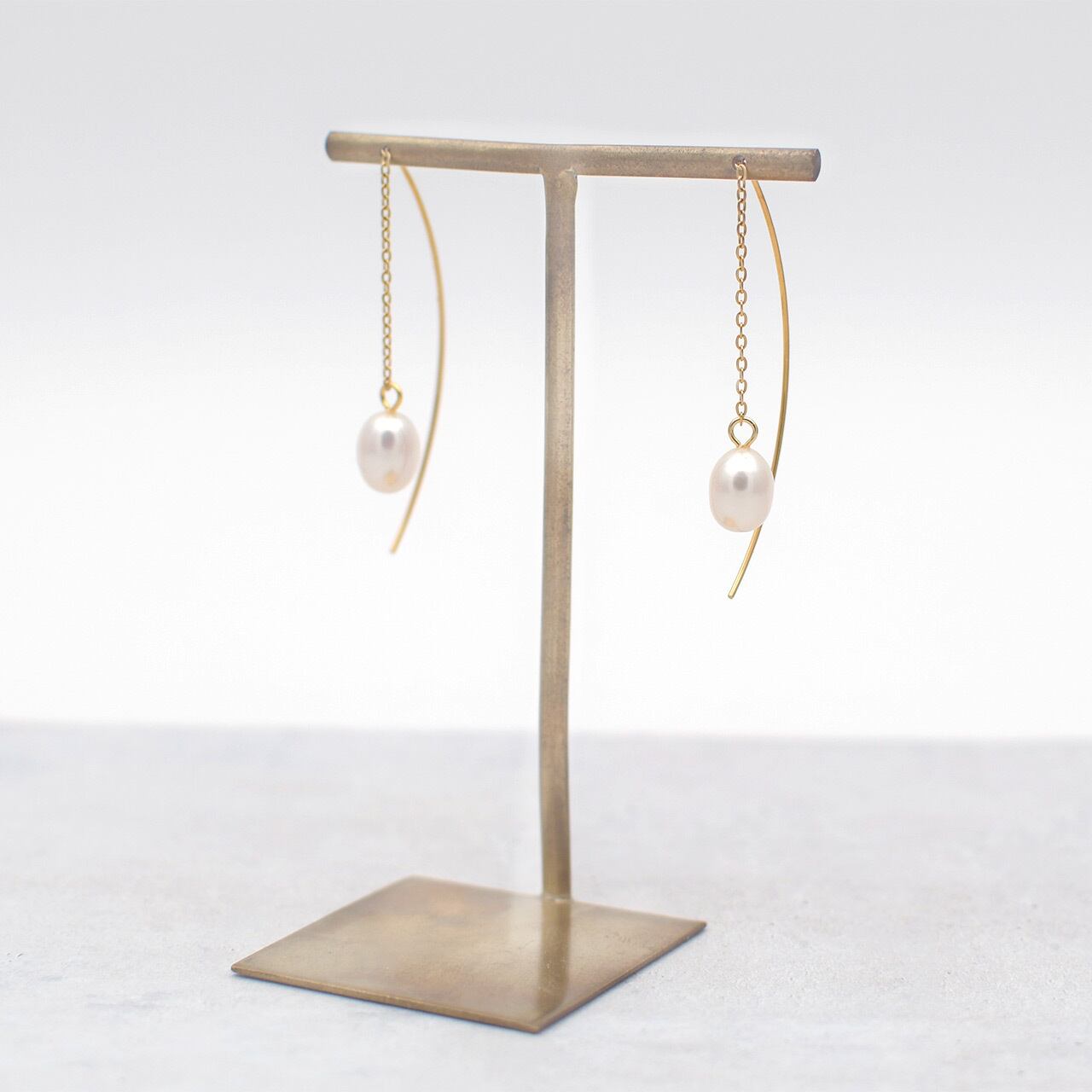 チェーン と カーブメタル の ピアス / 淡水パール オーバル アレルギー対応 ps-119
