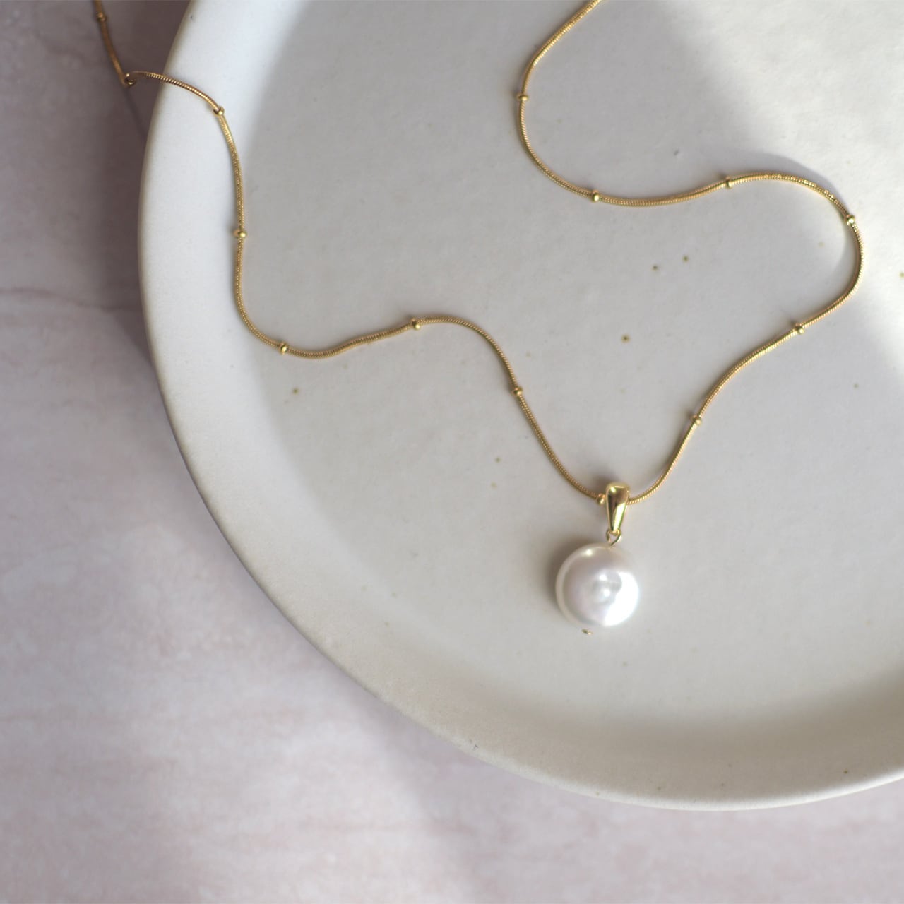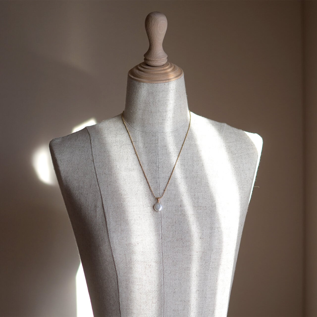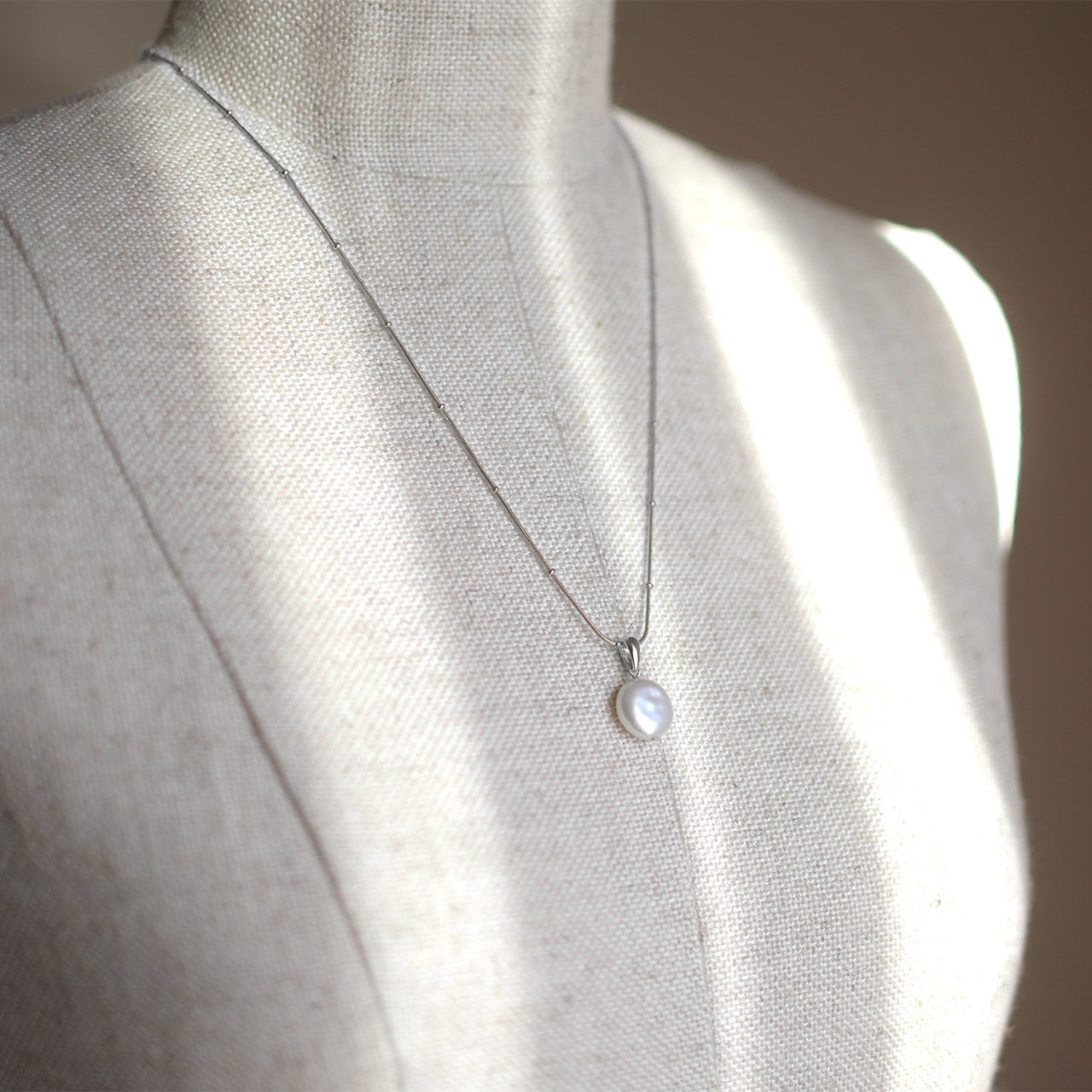 スネークチェーン × 艶やかなコインパール ペンダント / 淡水パール 50cm pe-104