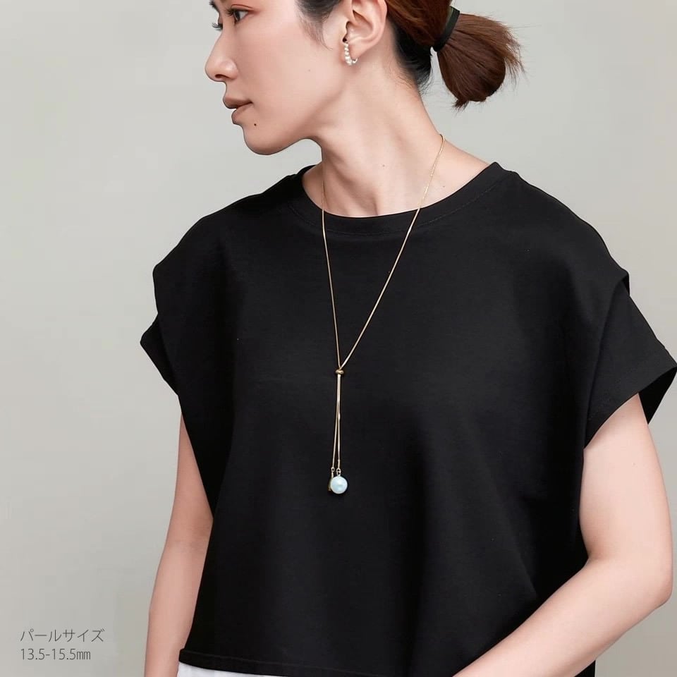 バロックとシズク スネークチェーン ラリエット ネックレス / サージカルステンレス製 淡水パール pe-107