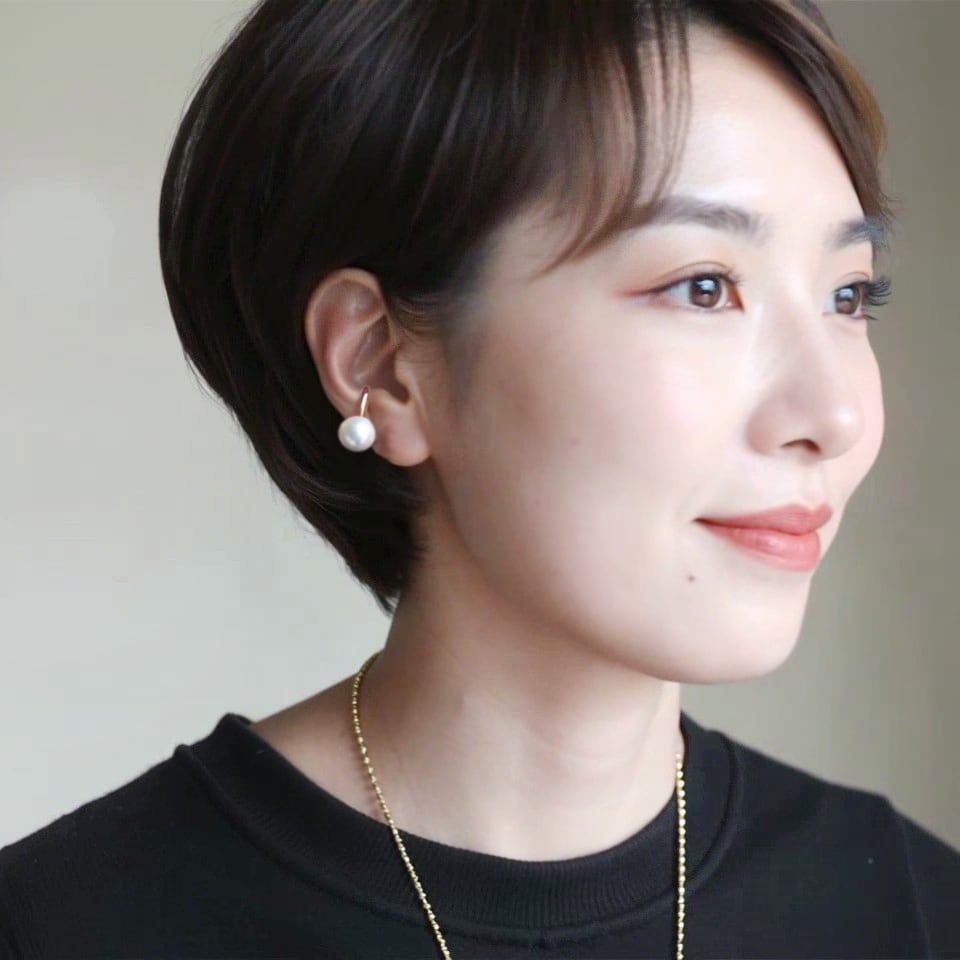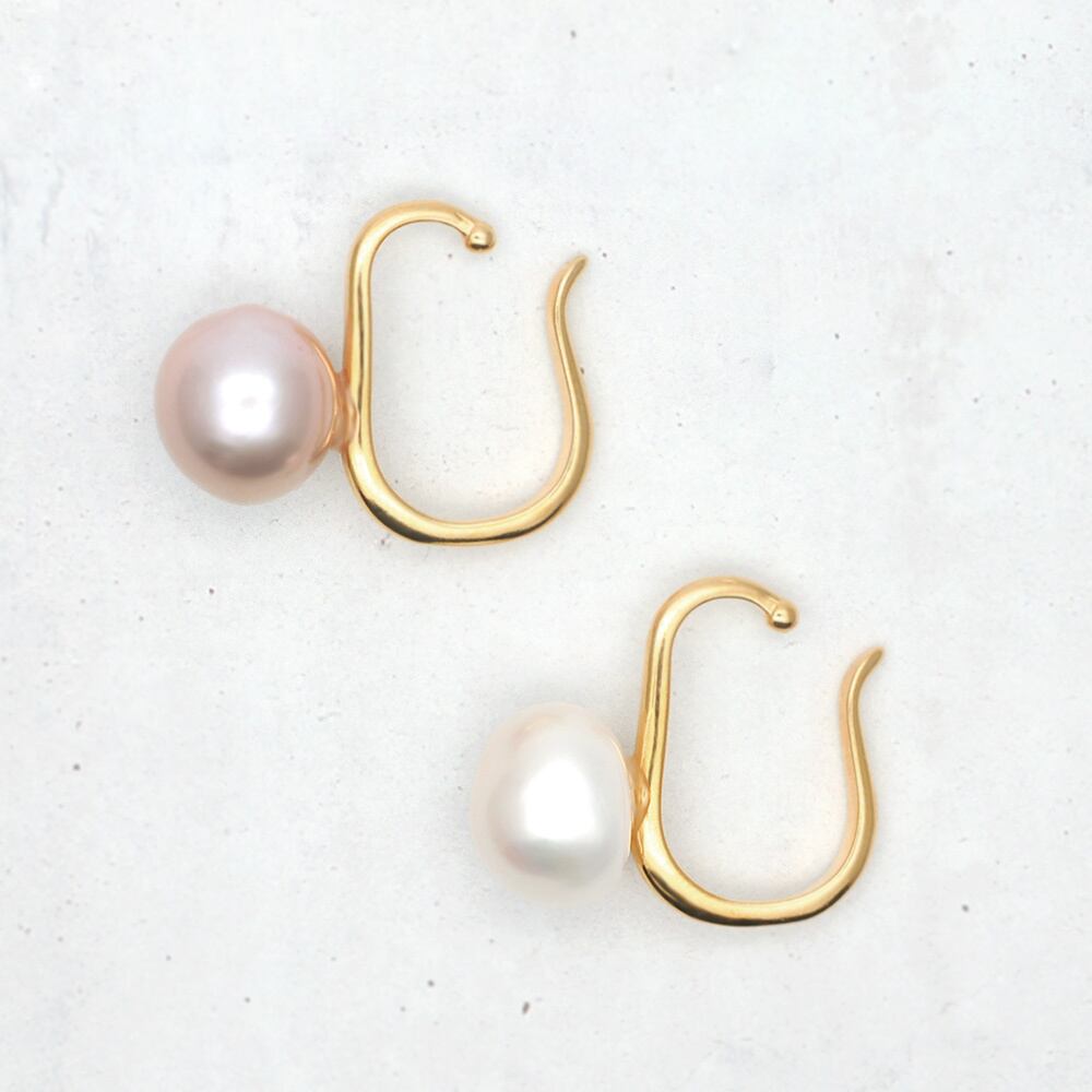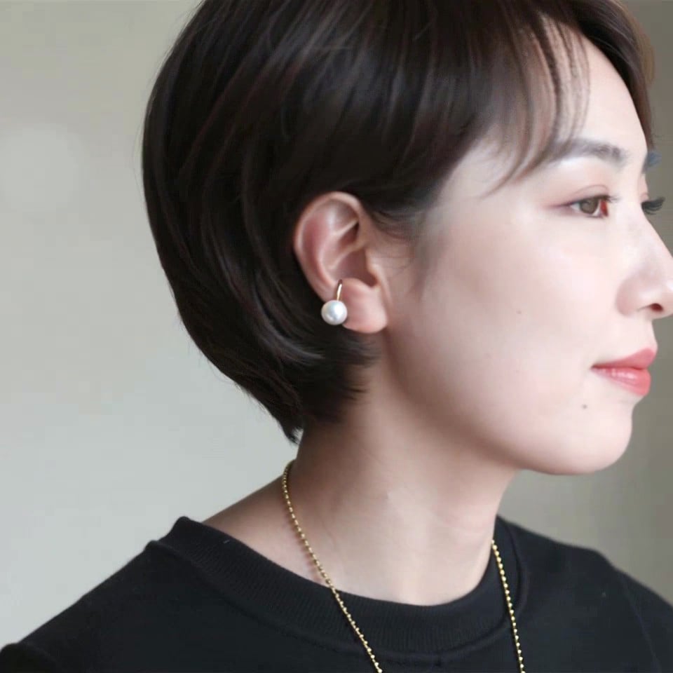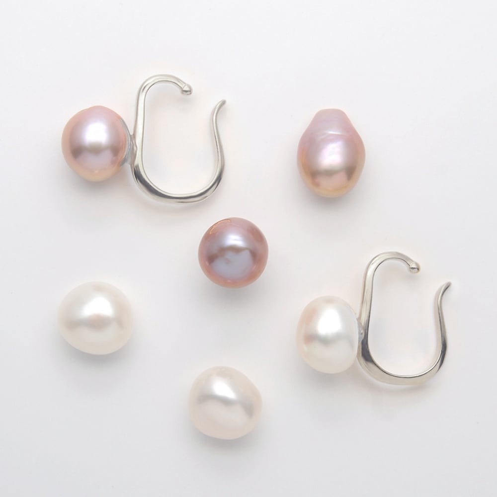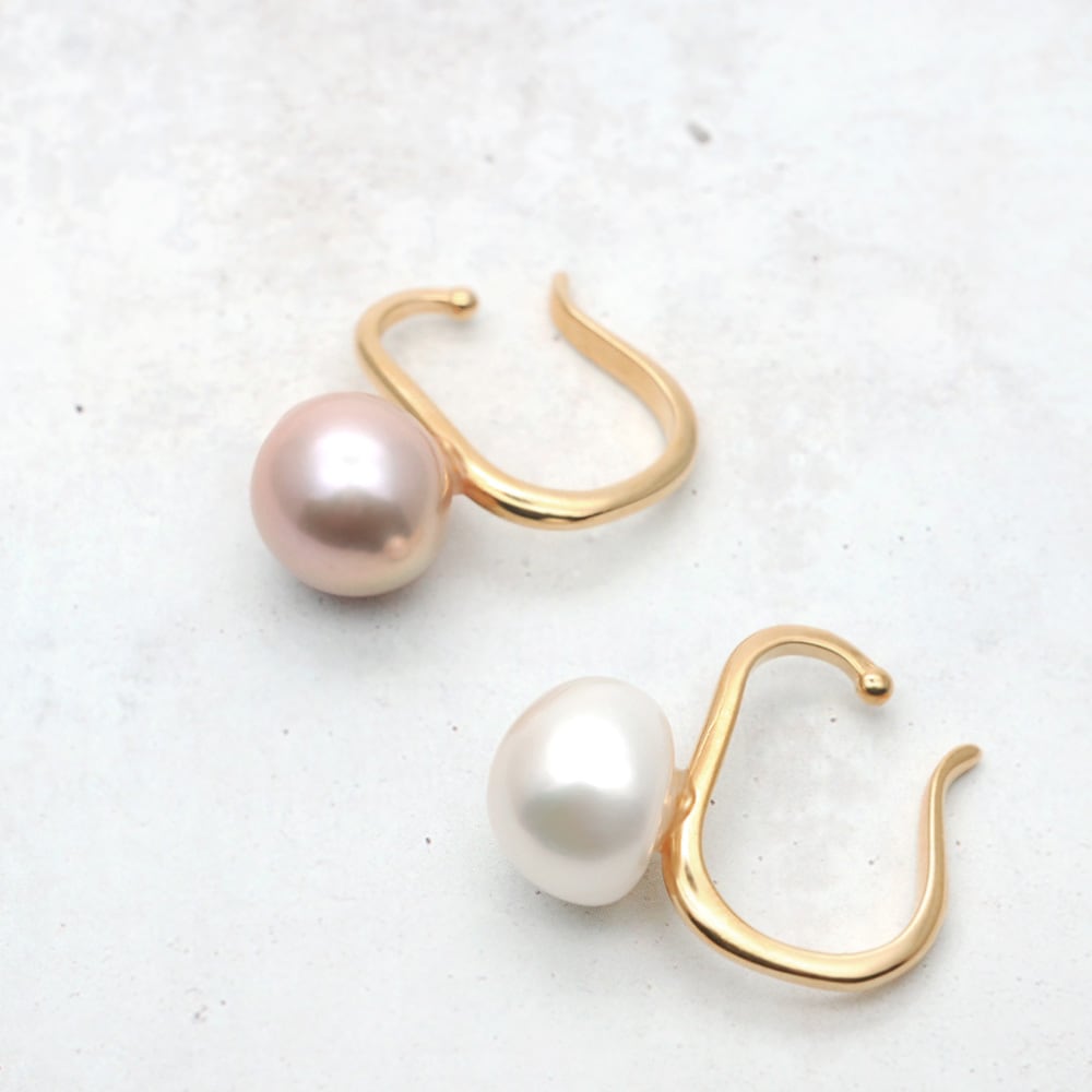 パープル系レアカラー 淡水パール アンティークフォルム イヤーカフ 真鍮製 / cf-073