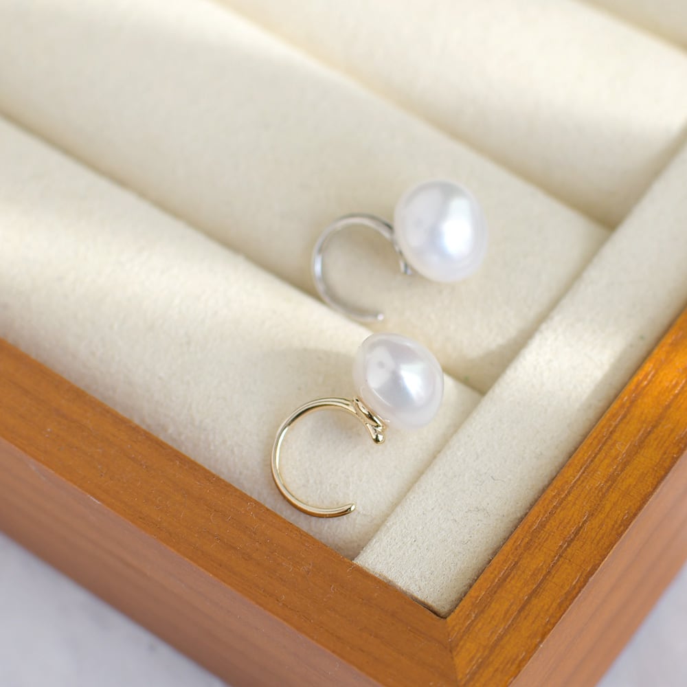 日常にすっと溶け込む 大粒バロックパール イヤーカフ / 淡水パール cf-077