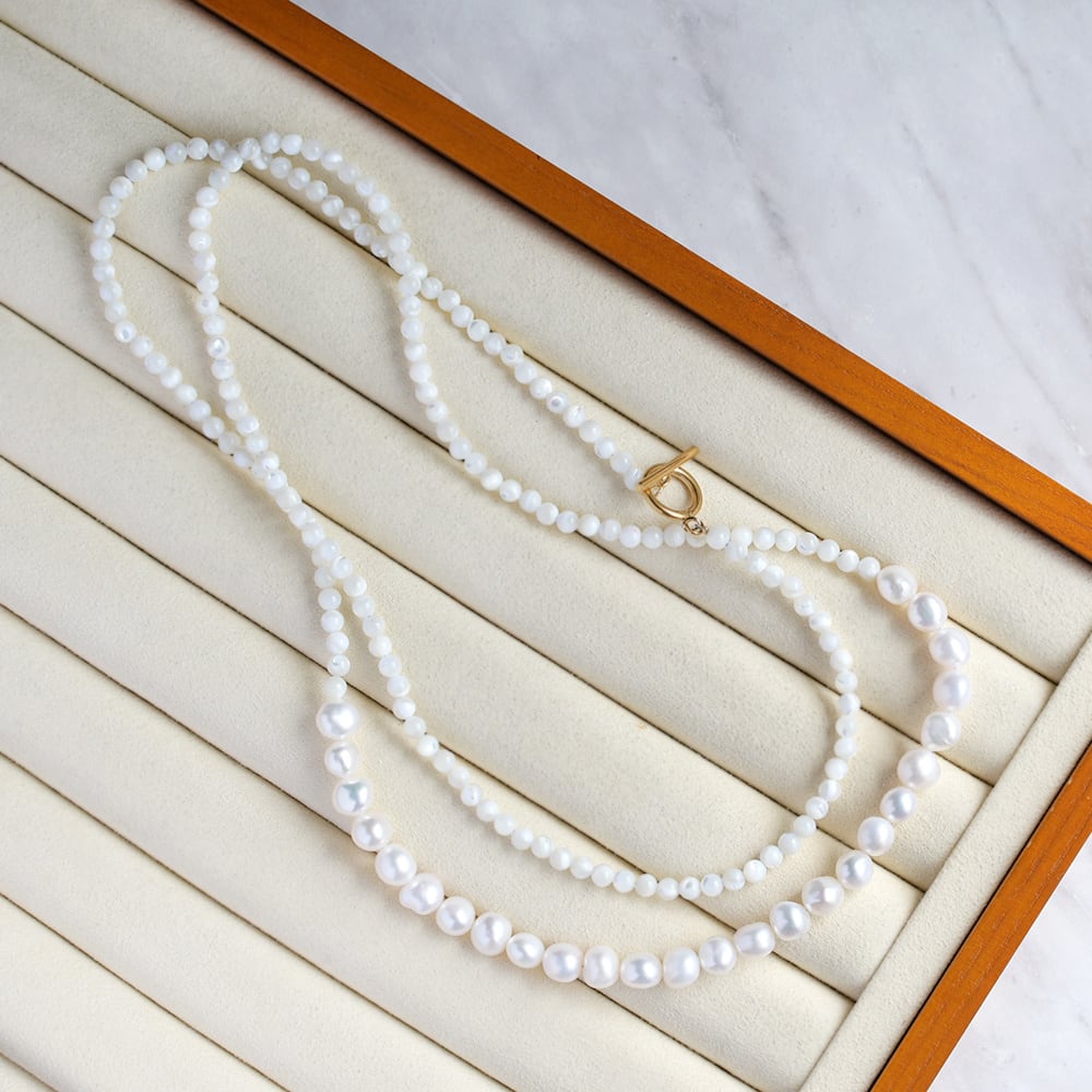 90cm ロングネックレス 淡水パール × マザーオブパール / バロック ロング フォーマル 普段使い ギフト / pe-123