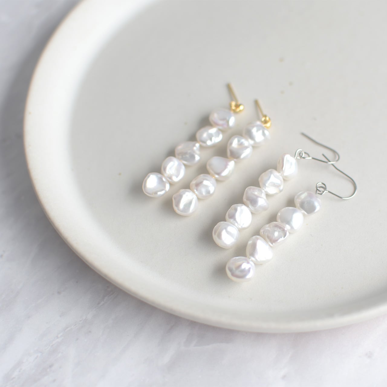 贅沢につらねた輝き 淡水パール バロック 5粒 ピアス イヤリング / ps-135